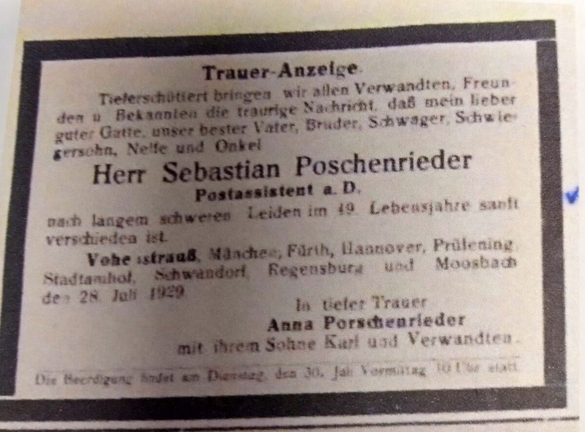 Auch Poschenrieder blieb. Er verstarb am 28. Juli 1929 an den Folgen einer schweren Erkrankung. Seine Nachkommen leben heute noch in Vohenstrauß und Umgebung.