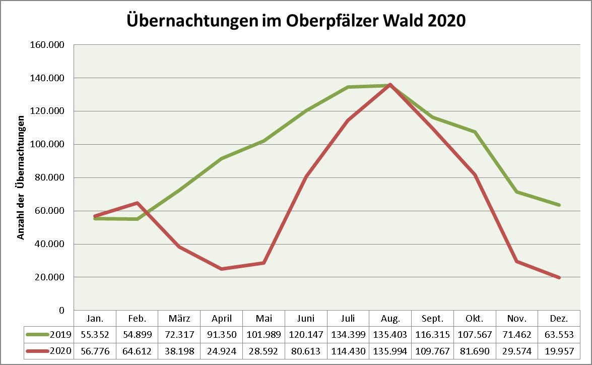 Die Veröffentlichung der Übernachtungszahlen durch das Bayerische Landesamt für Statistik führt das ganze Ausmaß der Coronakrise nochmals mehr als deutlich vor Augen: im gesamten Oberpfälzer Wald sind die Übernachtungen um 30,7 Prozent zurückgegangen.
