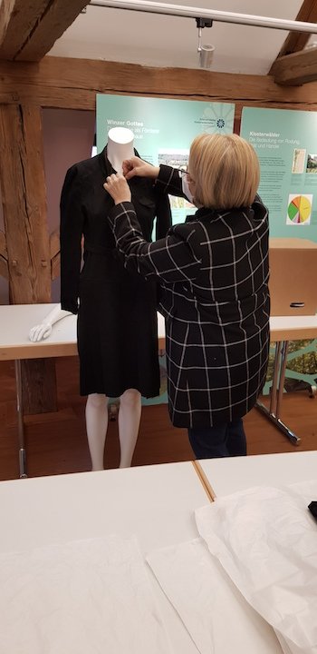 Dabei bedienen sie sich aus der reichhaltigen Sammlung, die die Senger Anna mit samt dem Hof der Gemeinde überlassen hat. Besonders beeindruckt sind die Beteiligten von den großen Beständen an Kleidung: Von Schürzen und Kleidern bis hin zu Hüten, Taschen und Unterwäsche ist vieles erhalten geblieben. Noch weit vor der industriellen Erzeugung sind alle diese Stücke in Handarbeit genäht. Die Nähmaschine musste noch mit einem Fußantrieb betrieben werden. Das Geschick der Näherinnen ist bis heute sichtbar.