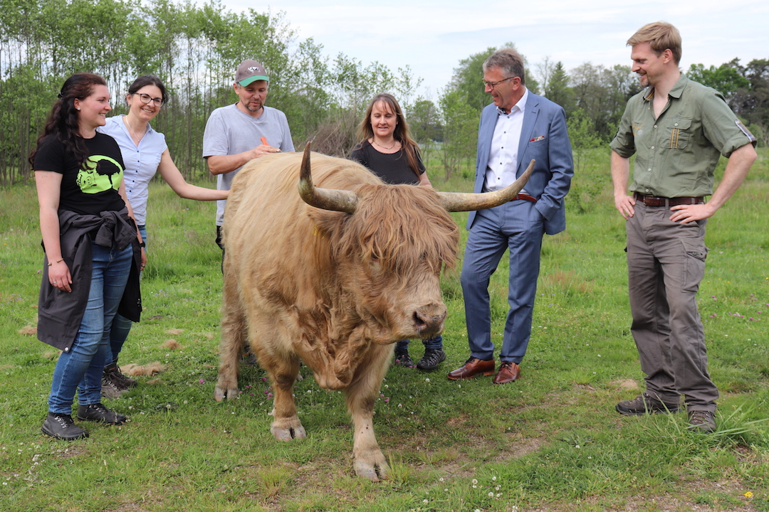 Susanne Pätz lobt, dass sich die Fläche zu einem artenreichen Biotopkomplex entwickelt habe. Darüber hinaus sei die Herde mit ihren Kälbern auch ein Blickfang für Fußgänger und Radfahrer. Sie bitte aber darum, das eingezäunte Areal nicht zu betreten. Dies diene dem Schutz der Herde, der Landschaft – und natürlich auch der Tier- und Naturliebhaber.