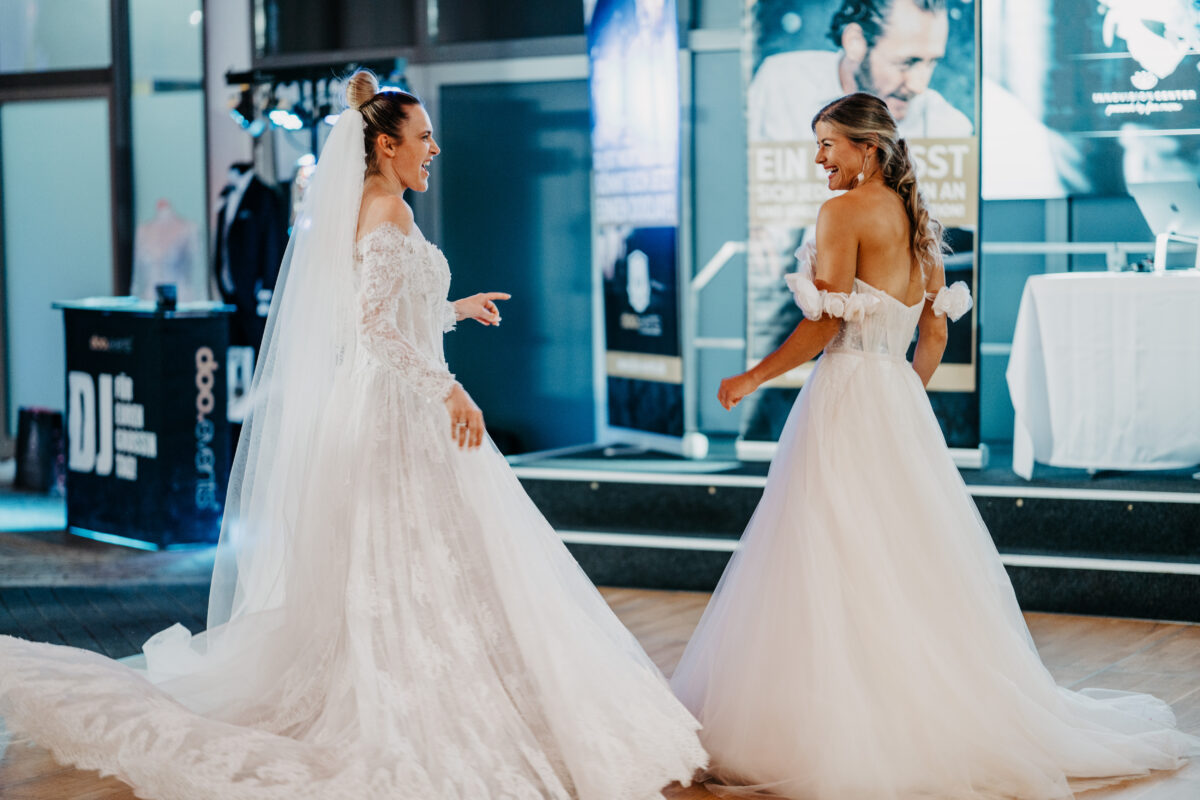 Ein besonderes Highlight war die Fashion-Präsentation: Statt eines herkömmlichen Laufstegs bewegten sich die Braut- und Festmoden frei im Raum und ließen die Looks in der besonderen Atmosphäre lebendig werden. Besucher konnten so die Designs hautnah erleben und sich von Stil und Persönlichkeit inspirieren lassen.