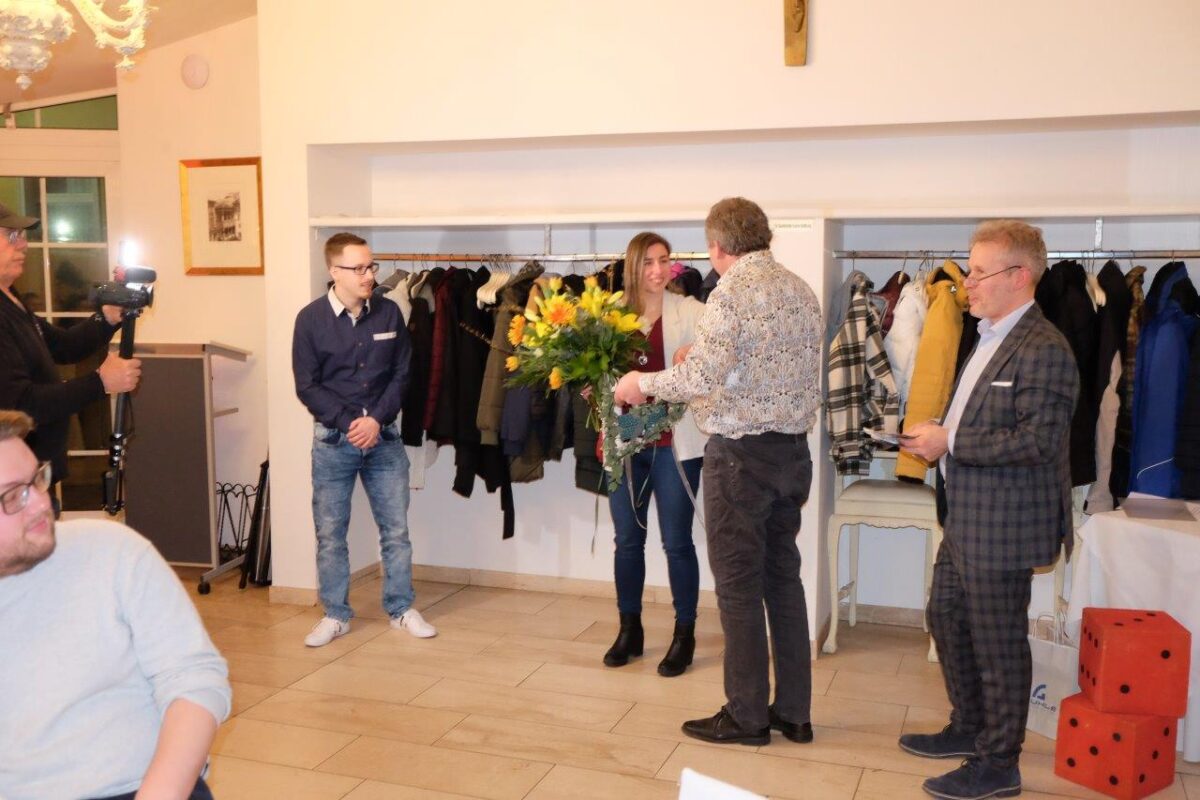 Die Geschäftsleute gratulierten dem Gewinner-Paar mit einem Blumenstrauß und den Gutscheinen der Fachgeschäfte im Gesamtwert von 2500 Euro. Martina Schieder und Sebastian Uschold aus Dürnast erhielten ein Wellnesswochende als Trostpreis.