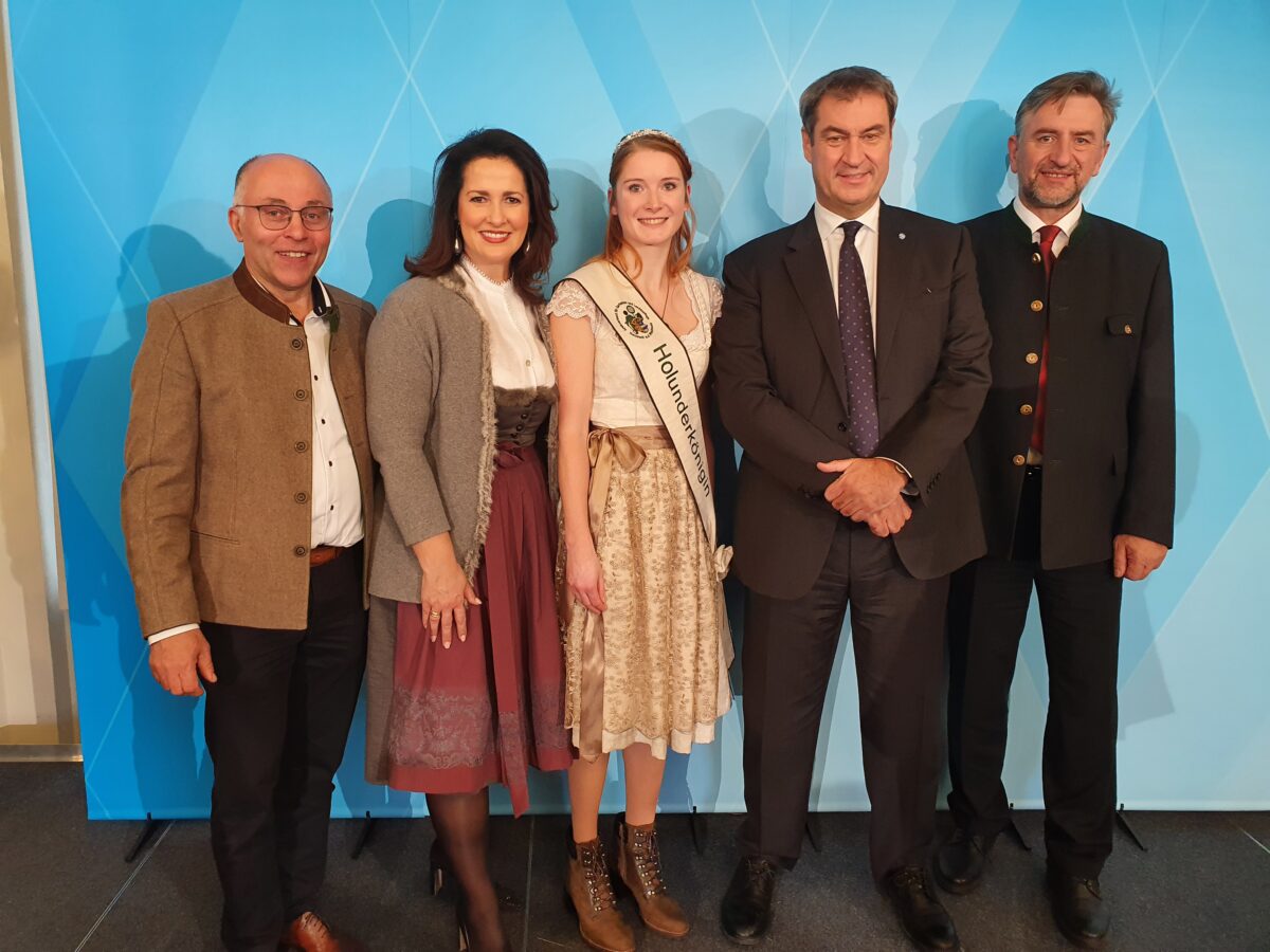Mit Albert Nickl, dem Vorsitzenden des Kreisverbandes für Gartenbau und Landschaftspflege Neustadt/WN, war die Holunderkönigin Monika Bernhard aus Steinach vertreten. Es gibt in Bayern nur eine Holunderkönigin, so war dies für beide Seite schon was Besonderes. Der Ministerpräsident hatte dazu mit der Bayerischen Staatsministerin für Ernährung, Landwirtschaft und Forsten Michaela Kaniber eingeladen.