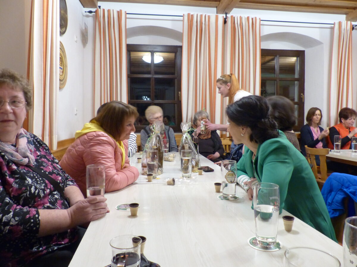 Seit Mai 2022 hat sie das Ehrenamt der Holunderkönigin inne und darf es zwei Jahre begleiten und sprach auch ihre hoheitlichen Pflichten an. Sie ist somit die 14. Holunderkönigin im Landkreis. Erste Holunderkönigin war damals 1992–1996 Marianne Rauh. Die Idee, dass der Landkreis eine eigene Königin brauche, hatte der damalige Landtagsabgeordnete Georg Stahl. Nach soviel Infos gabs auch was zum Probieren. Die Holunderkönigin hatte zwei verschiedene Sorten Holunderlikör mitgebracht, der allen mundete. Vorsitzende Martina Maier bedankte sich mit einem Präsent im Namen der Frauengruppe für diesen Einblick, der Aufgaben einer Holunderkönigin.