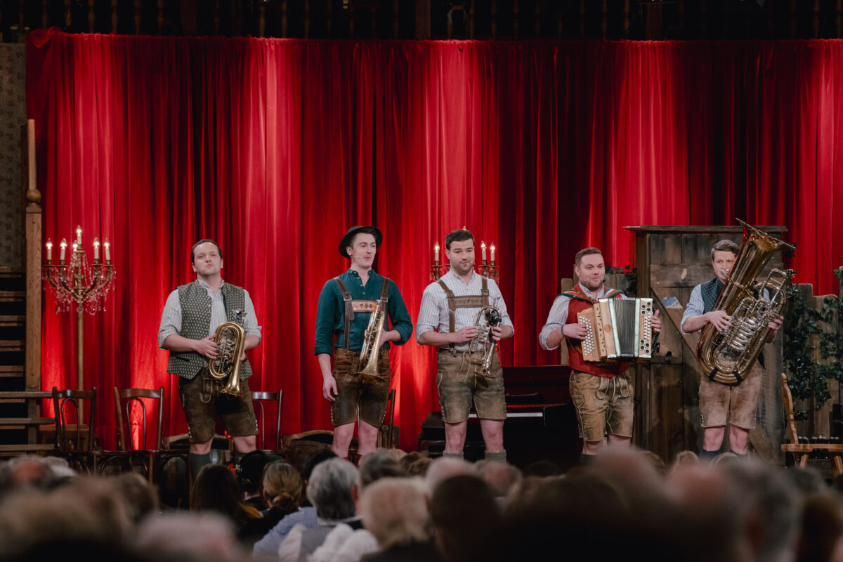 „Musikalisch legen wir unseren Fokus auf bayerisch/ böhmische Blasmusik, Wirtshaus-Gesänge sowie alte Schlager, die nicht in Vergessenheit geraten dürfen“, erklärt einer der „Bandmitglieder“ Julian Bauer, im Vorfeld. Aufmarschieren und gratulieren werden als Gäste die „Mittelberg Musikanten“ (Klaus Süß, Christian Müller und Bernhard Planner) aus Georgenberg, „Die Bockadn“ mit Mathias Hofmeister, Fabian Klotz und Thomas Nirschl aus Tröbes und „Dezent Böhmisch“ – 11 Freunde aus Hemau, die mit ihrer unverbrauchten – jung-dynamischen Blech – Brass – power gehörig aufmischen. Und natürlich das Geburtstagskind selbst, die „Die Hulzstoussboum“.