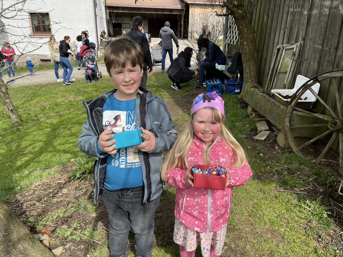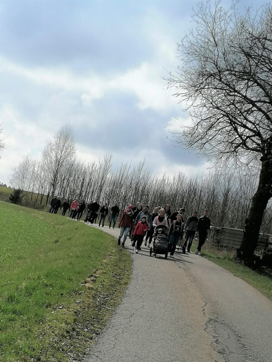 Sie sind mit unserem Bollerwagen zum Gasthof Hedwig Schaller nach Georgenberg gewandert. Bei einer Zwischenstation bei der Familie Prem in Oberrehberg durften die Kids die vom Osterhasen versteckten Nester suchen, die Erwachsenen fanden so manchen leckeren Kuchen. So konnte der Emmauswanderung gestärkt bis nach Georgenberg angegangen werden.