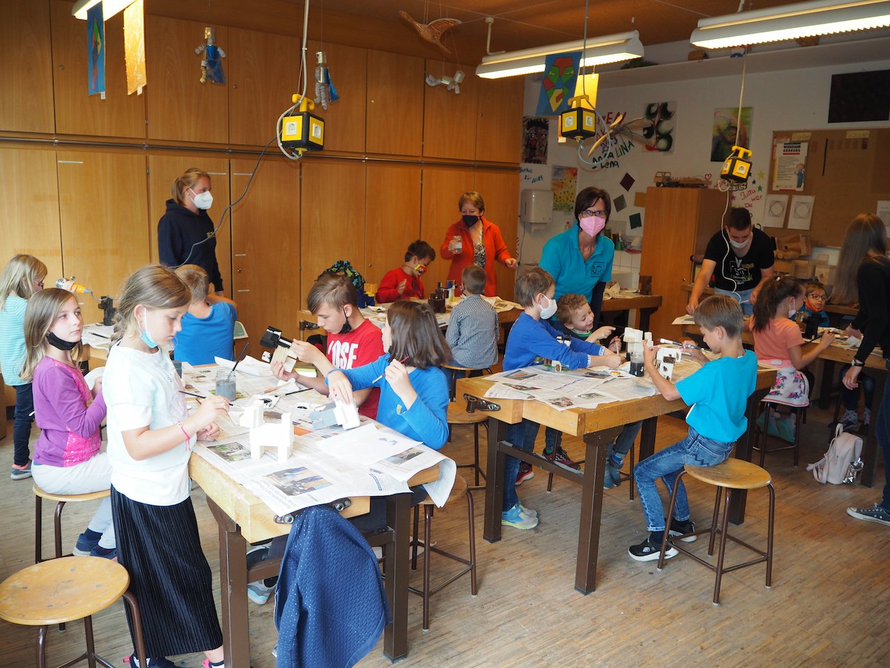 Bereits im Vorfeld hatte die Schreinerei Stephan Schmid die Holzklötzchen vorbereitet und im Anschluss gesponsert. Die Kinder mussten die Teile dann noch schleifen, leimen und dübeln – und fertig war ein Hund aus Holz.