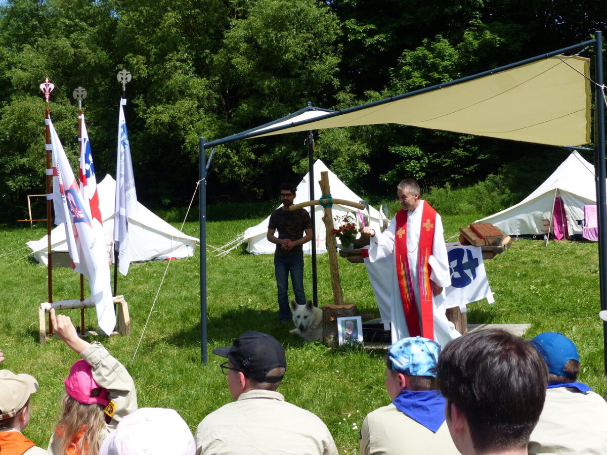 Pfadfinderkinder und -jugendliche trugen die Lesung und Fürbitten vor. Nach der kirchlichen Zeremonie waren alle zu Kaffee und Kuchen eingeladen. Ein großer Dank galt der Familie Stahl, die für die Pfadfinder immer einen Lagerplatz im Pfreimdtal zur Verfügung stellt.