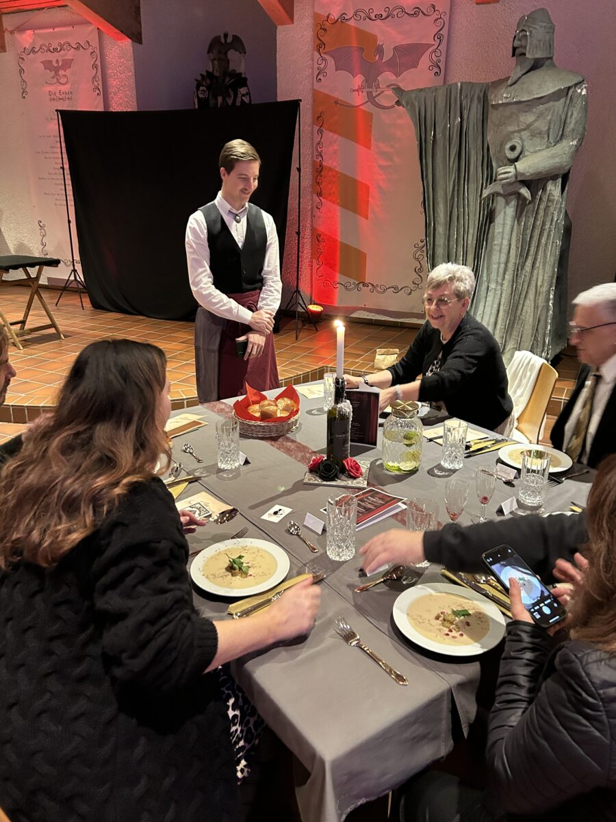 Schon beim Sektempfang im stilvoll dekorierten Rittersaal wurde deutlich: „Illuma“ setzt auf Exklusivität und elegantes Ambiente. Zwischen den Showeinlagen genossen die Gäste ein exklusives Drei-Gänge-Menü, das die hochwertige Ausrichtung des Abends kulinarisch untermauerte.