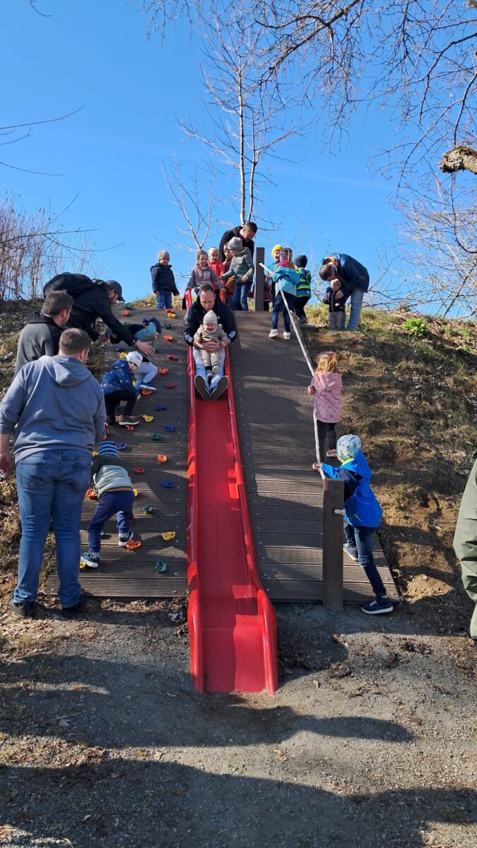 Unter der Leitung von Claudia Fichtl hatte sich der Elternbeirat wieder allerhand schöne Stationsaufgaben ausgedacht. So mussten sowohl die Kinder als auch die Erwachsenen die Rutsche bei den Totentafeln testen, es wurden zahlreiche Blumensamen auf der Panoramawiese gepflanzt und auch die Zählaufgaben hatten es in sich: