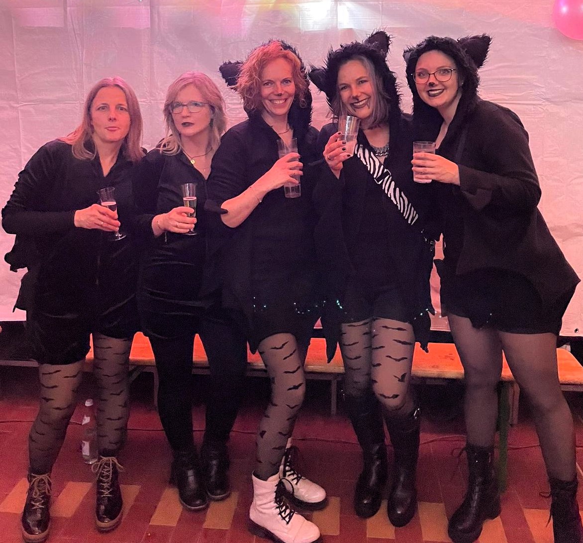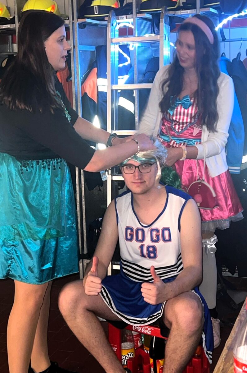 Im Feuerwehrhaus war die Gerätehalle für die feierwütigen Frauen und Mädels mit Faschingsdekoration versehen, sodass einer ausgelassenen Stimmung nichts mehr im Weg stand. Da die Männer der Wettkampfgruppe nicht gleich ihre Identität preisgeben wollten, hatten sie sich einheitlich als Cheerleader verkleidet, die ja an diesem Abend hauptsächlich zur arbeitenden Bevölkerung zählten.