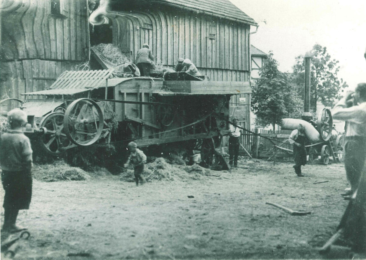 Besonders lebendig sind ihm die Dreschmaschinen der Lagerhausgenossenschaft in Erinnerung. Diese wurden damals bereits von Lanz-Traktoren gezogen und mit großen Elektromotoren betrieben. „Den Strom dazu haben wir über lange Leitungen von Hof zu Hof verlegt“, erzählt Dimper. „Die Steckdosen dafür waren beim Vetter in Kastl – und ich hab als Bub fast bei jedem Dreschen mitgeholfen.“ Doch nicht überall kam dieselbe Maschine zum Einsatz. Beim Anwesen Kaufmann in Neuenreuth etwa, so weiß er noch, stand die kleinere Dreschmaschine der Atzmannsberger Genossenschaft. Besonders eindrücklich war für ihn der Wandel nach dem Krieg, als die ersten Traktoren und schließlich die ersten Mähdrescher auf die Höfe rollten. „Da hat sich alles verändert – und das Dreschen, wie wir es kannten, war Vergangenheit.“