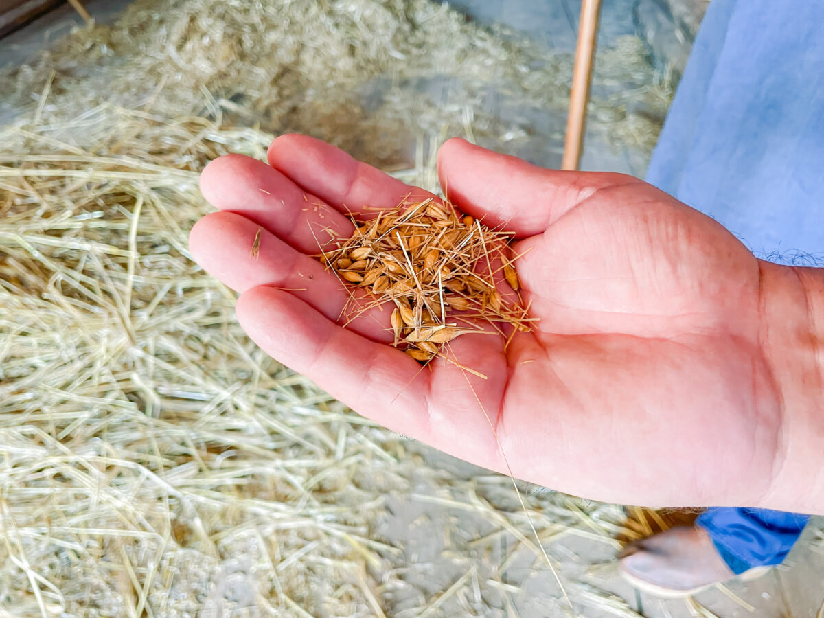 Dreschen war keine Arbeit, die man „nebenbei“ erledigte. Es war Knochenarbeit, die Geduld und Rhythmus verlangte. In den Stuben ruhte das Leben, draußen knarrte der Schnee – und im Stodl klangen die Schläge der Dreschflegel wie ein gleichmäßiger Trommeltakt. Frauen und Kinder halfen, die Körner zusammenzukehren, sie durch Siebe, die sogenannten „Reitern“, zu schütteln und von Spreu und Unkraut zu trennen. Was übrig blieb, ging an die Hühner oder diente als Einstreu. Auch an diesem Nachmittag in Altköslarn liegt diese Mischung aus Mühe und Stolz in der Luft. Michael Thaler zieht mit der Gabel das ausgedroschene Stroh zur Seite, neues wird nachgelegt, während die Körner im Schwingel aufgetürmt werden. Jeder Griff sitzt, jeder Handgriff erinnert an eine Zeit, in der Überfluss ein Fremdwort war.
