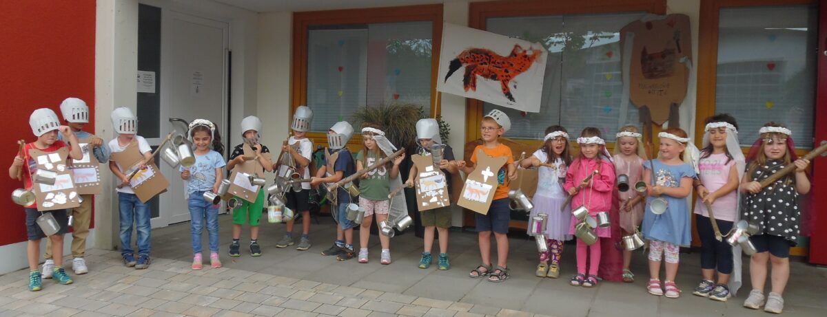 In einem actionreichen Projekt, welches Ritter und Burgfräulein thematisierte, konnten die Kinder vielen mittelalterlichen Geschichten lauschen. Sie bekamen sogar ein eigenes Gewand und stellten aus Dosen Instrumente her. Mit viel Getöse führten sie ihren Familien während der Langen Nacht ein Ritterlied vor.