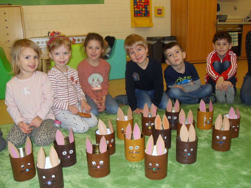 Natürlich werden auch fleißig Osternester gebastelt. Der Umweltaspekt wird hier wieder besonders gestärkt. Genau wie im Herbst bei den Laternen greift man auch jetzt im Frühling das Upcycling Thema wieder auf und verwandelt Konservendosen in ein Osternest.