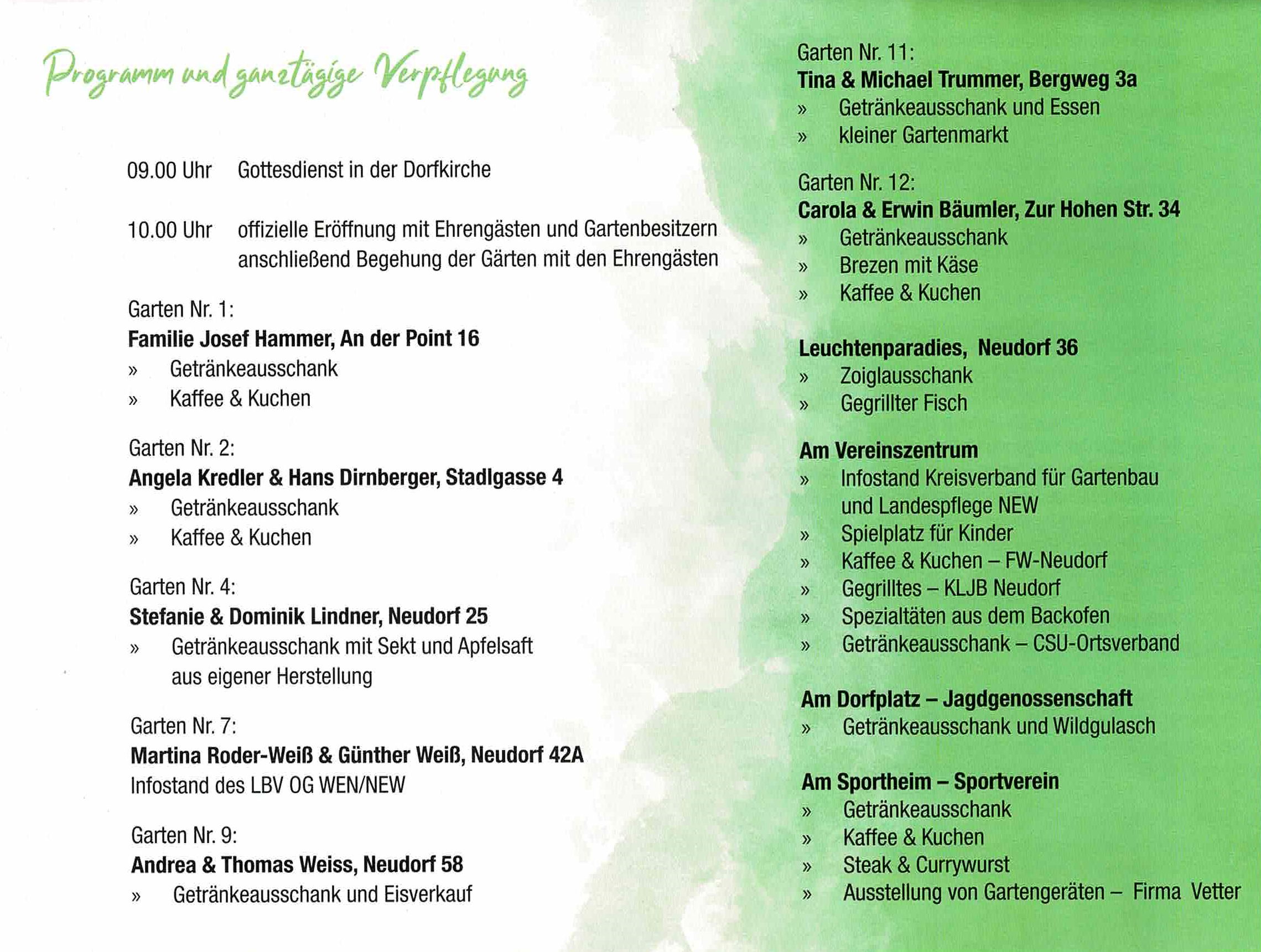 - 10 Uhr offizielle Eröffnung mit den Ehrengästen und Gartenbesitzern