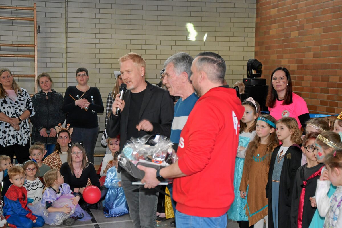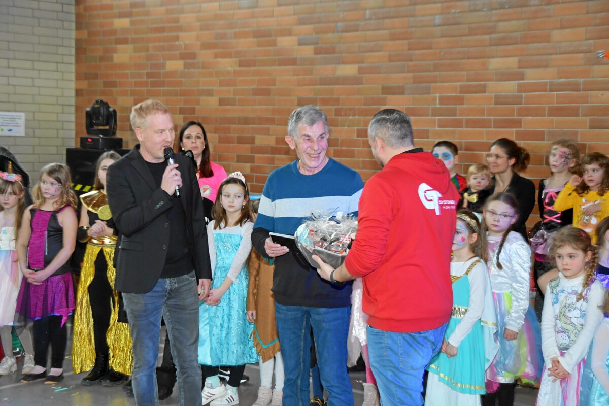 Angefeuert wurden sie in gewohnter Weise von DJ Mathias Bäumler. In kleinen Showeinlagen zeigten die Tanzgruppen des VfB Rothenstadt, die „Little Zappelinos“, die „Redcity Fitness Kids“ und die „Dancing Girls“ ihr Können. Unterstützt wurden sie dabei vom Gute-Laune-Vereinsmaskottchen Roti. Aber das Fest diente als Rahmen für eine ganz besondere Verabschiedung. Nach 40 Jahren federführender Organisation des Rothenstädter Kinderfasching, legte Josef Bäumler diese Aufgabe in die Hände seiner Nachfolger. Der Erste Vorstand Daniel Troidl übergab vor der großen Gästeschar ein paar Geschenke und Zweiter Vorsitzender Roland Richter fand viele lobende Worte für die großartige Arbeit des, wie Richter sagte, “Godfather Of Kinderfasching”.