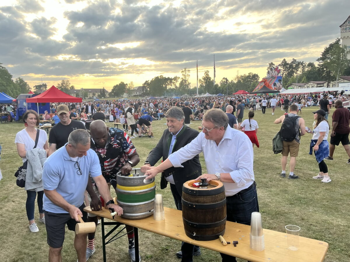Mit dem Anzapfen eines Bierfasses feierte der neue Brigadegeneral Steven Carpenter Premiere. In lockerer Atmosphäre wurde dann auf den Unabhängigkeitstag und die bayerisch-amerikanische Freundschaft angestoßen. Zur Hymne „Born in the USA“ erhellte das große Brillantfeuerwerk zum Abschluss den nächtlichen Himmel über dem Festplatz und der Stadt.