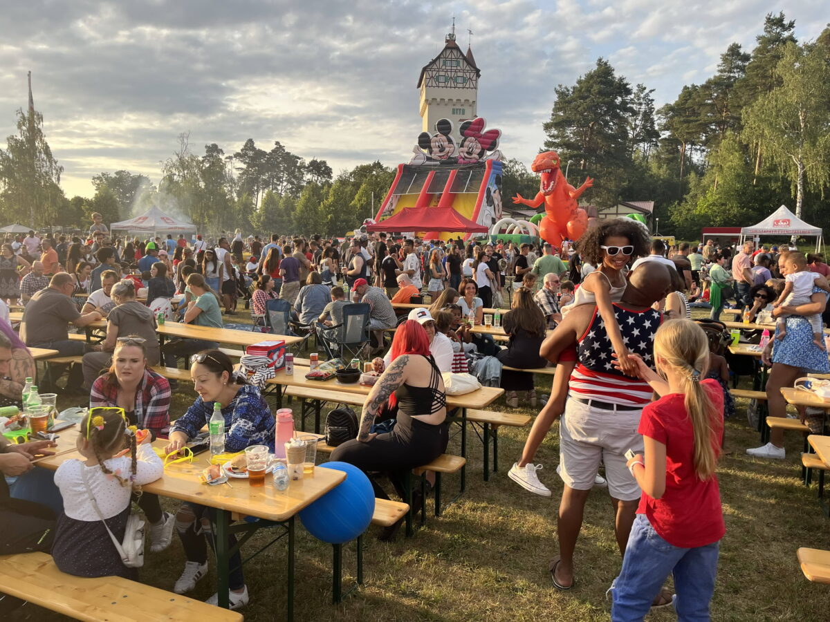 Seit der Erklärung ihrer Unabhängigkeit von der britischen Krone im Jahr 1776 ist der „4th July“ der bedeutendste der amerikanischen Feiertage. Und die Feierlaune war auf dem Paradefeld unter dem Wasserturm intensiv zu spüren. Ausgestattet mit Picknickkörben, Coolern und allerlei Camping-Equipment feierten die amerikanischen Soldaten mit ihren Familien. Auch von vielen deutschen Gästen wurde das Angebot angenommen, mit einem Installationspass-Inhaber das Lagertor zu passieren.