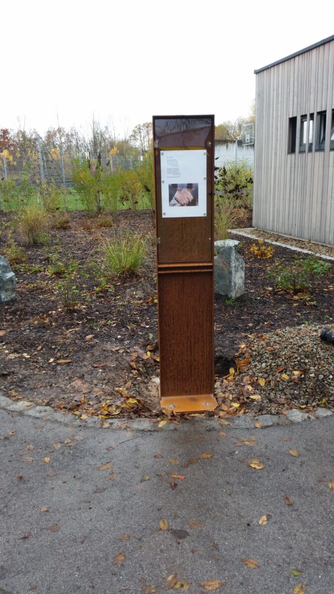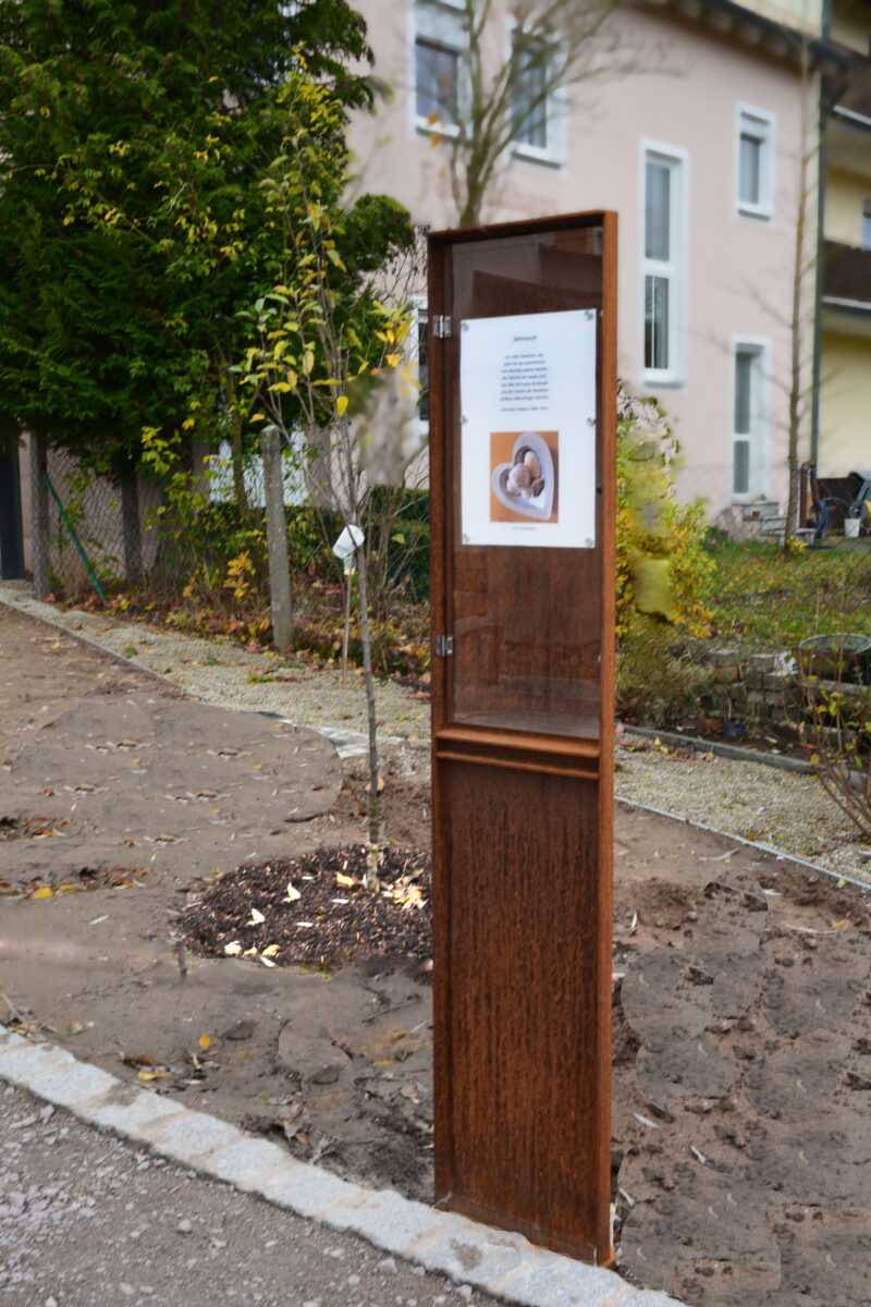 Die Anregung dazu kam von Heiner Brückner vom Kulturkreis, der auch weiterhin für die Bestückung der nunmehr stabilen Stelen mit poetischen Texten sorgen wird. Mit Billigung des Stadtrats beschloss der Kulturkreis zunächst drei neue Stelen zu installieren. Als Standorte wurden die Prof.-Dietl-Anlage (zwei) und der neue „Obstgarten“ an der Bahnhofstraße ausgewählt.