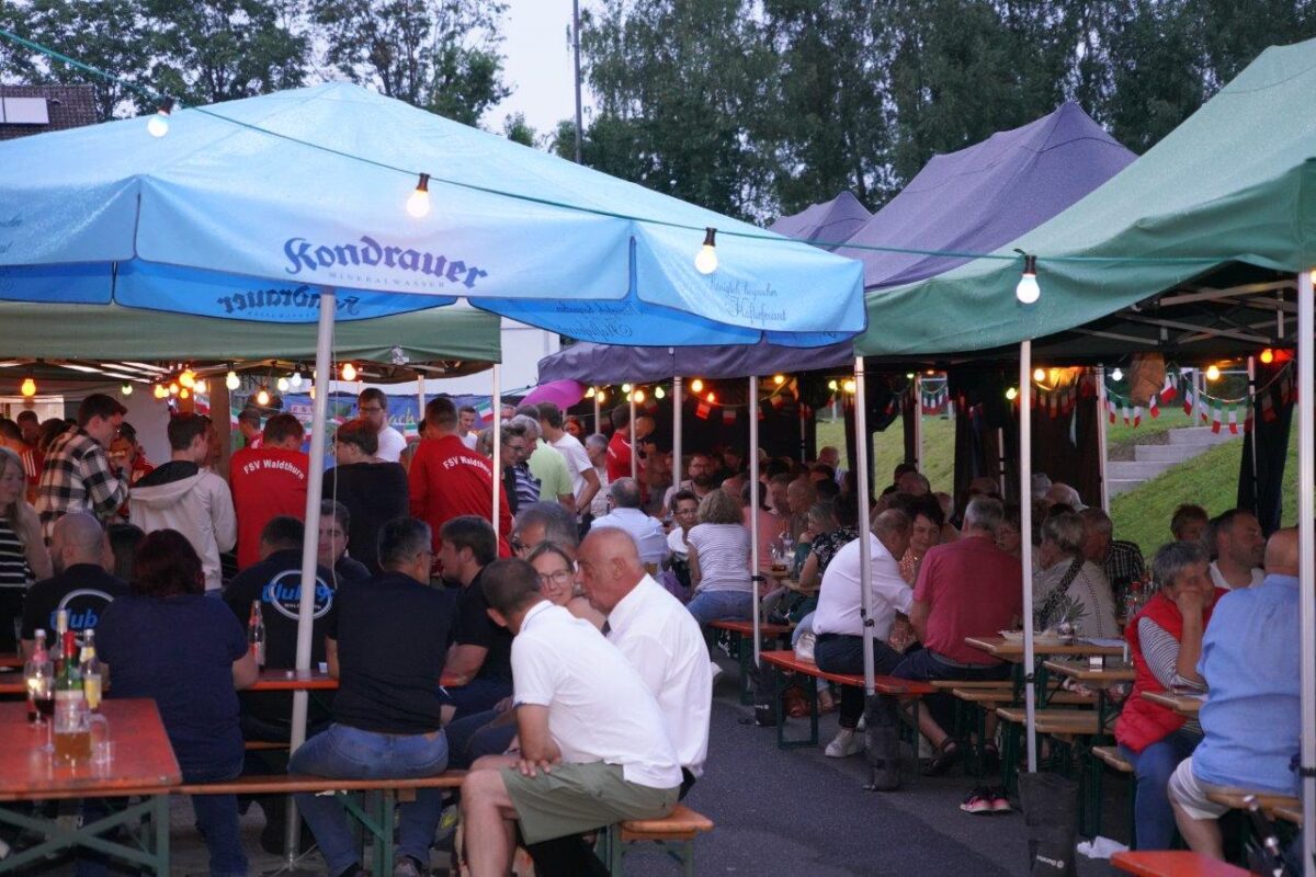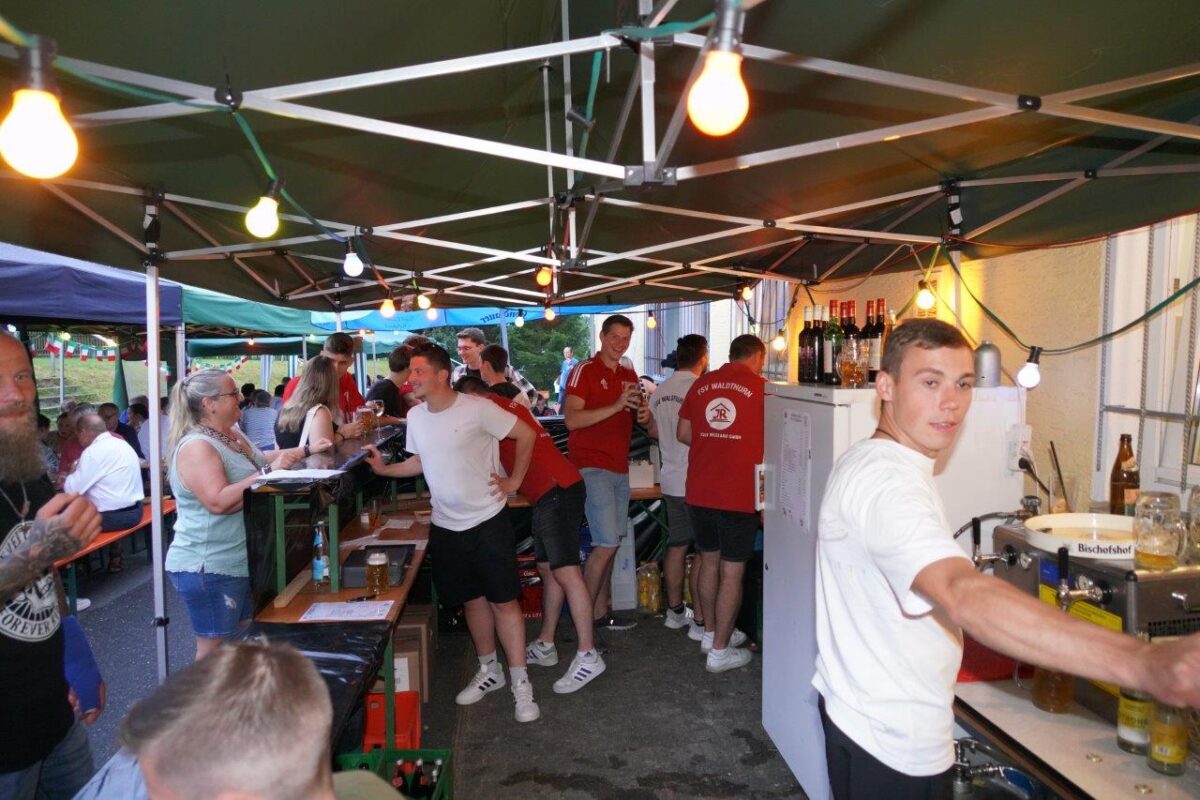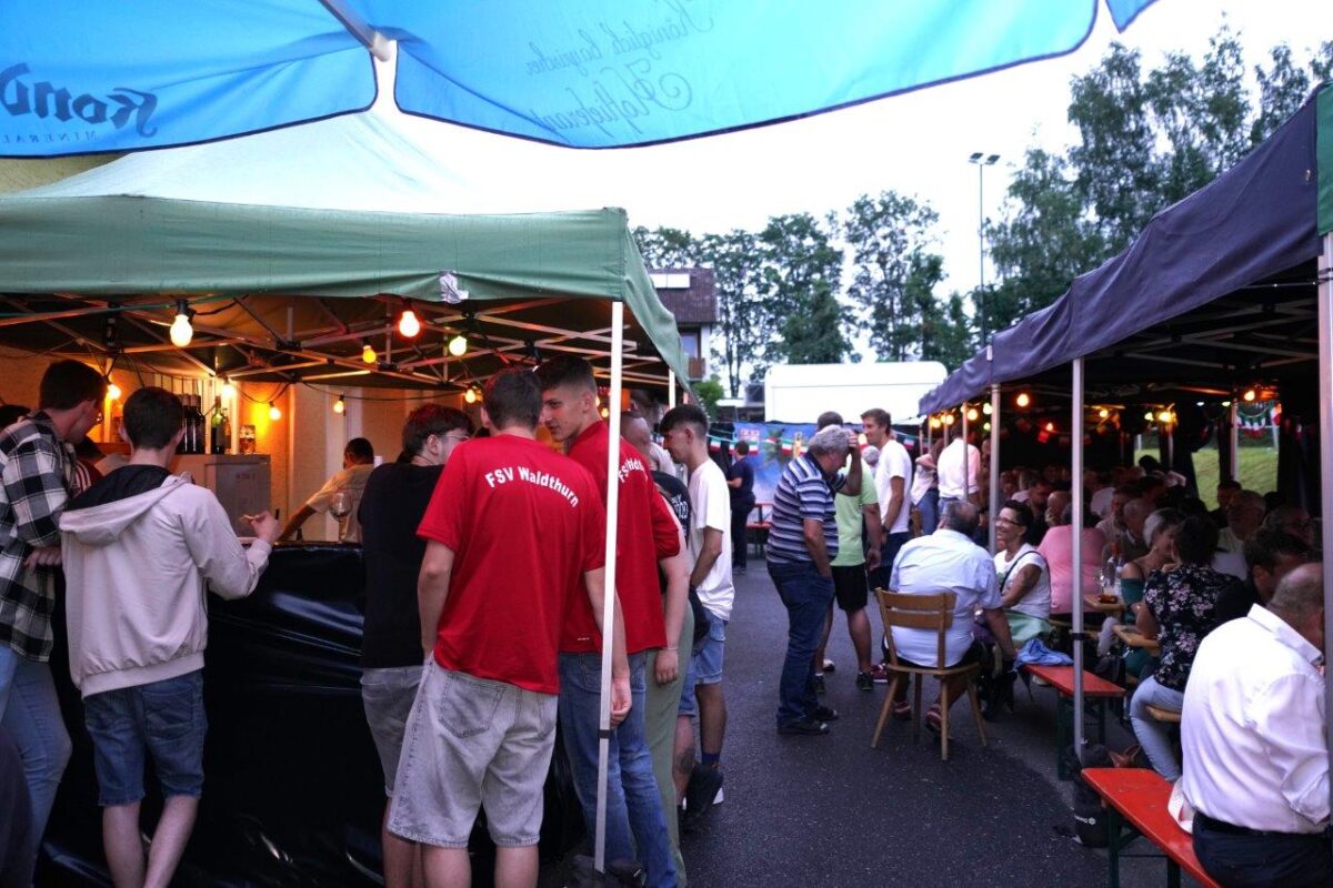 Zur Wetterabsicherung hatte man entsprechenden Zeltschutz aufgebaut. Pizzabäcker “Bichte” Josef Arnold und sein Team hatte zusammen mit dem Nudelexperten Norbert Schmid ganze Arbeit geleistet. “Die italienische Cocktailbar hat die “junge Generation unter der Cocktailführung von Daniel Strunz, Simon Bauer, Thomas Arnold, Michael Schön oder auch Max Stark übernommen”, erklärte FSV-Vorsitzender Peter Sollfrank voller Freude.