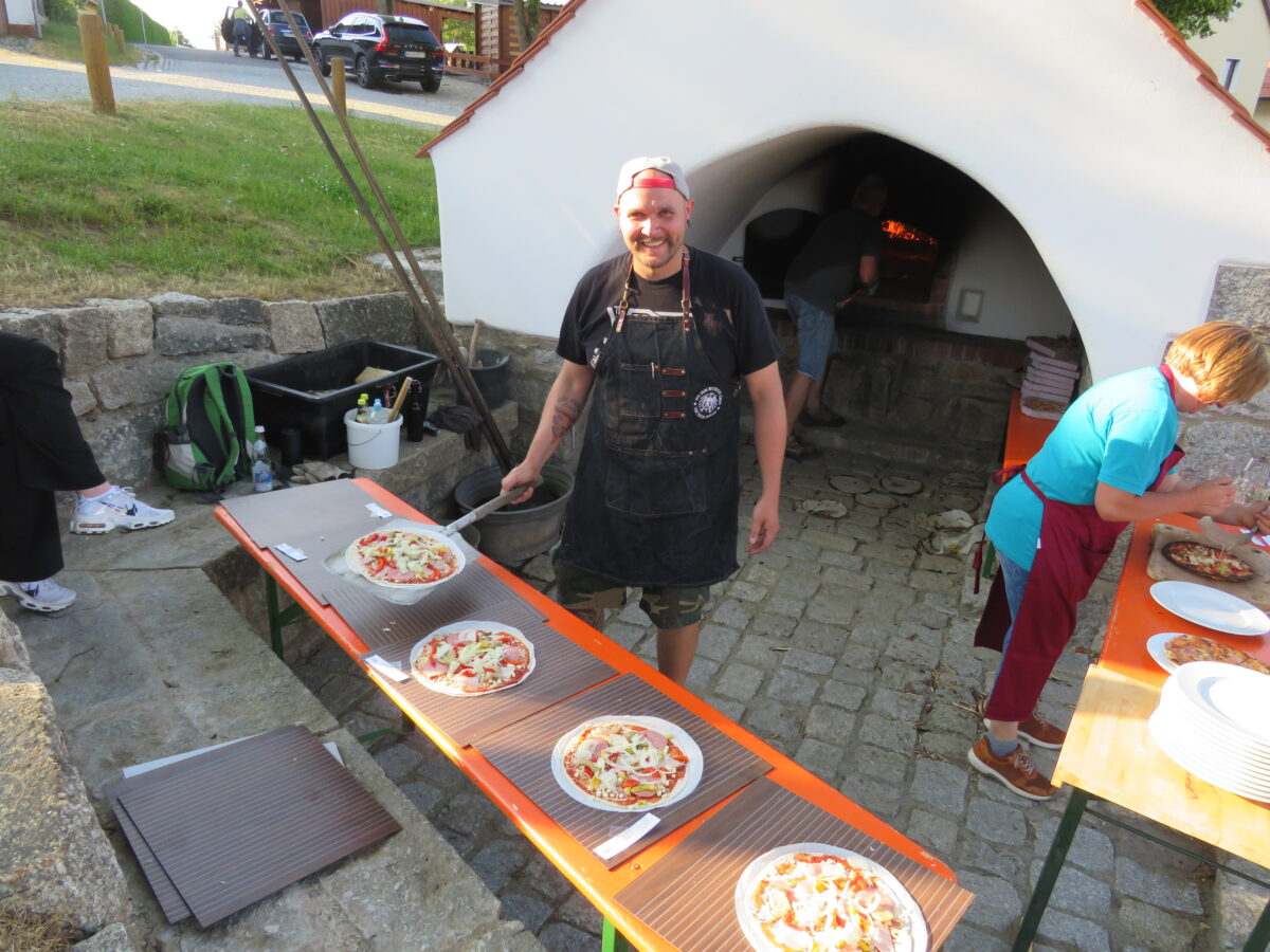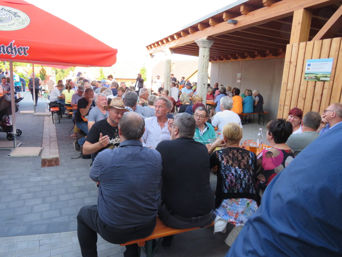 Der Backofen rauchte und die Helfer hatten alle Hände voll zu tun, den Hunger und Durst der über 300 Besucher zu stillen. Die Sitzplätze waren schnell besetzt. Tische und Bänke wurden zusätzlich aufgestellt. Einige Gäste genossen die kulinarischen Spezialitäten an Stehtischen.
