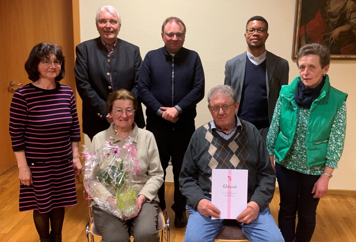 Die Vorsitzende des Ortsverbandes Claudia Porst freute sich eingangs über den guten Besuch zur Versammlung. Für sechzig Jahre Mitgliedschaft konnte sie an diesem Abend zusammen mit Präses Pfarrer Markus Bruckner und Kaplan Justin Kishimbe, sowie Josef Hecht als zweiten Bürgermeister Ingrid Sischka und Marianne Melzner gratulieren. Für stolze vier Jahrzehnte an Treue bedankte man sich bei Michael und Hildegard Etterer, Erna Zeitler, Hannelore Popp, Gerda Scherm, sowie beim Fahnenträger des Vereins Alois Unterburger.