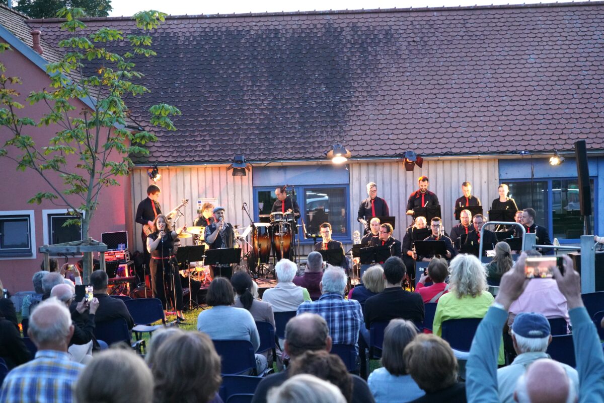 Bei „Mr. Bojangles“ glänzte Pflaum bei seinem Heimspiel, zeigte seine Professionalität, sang und legte ein Pfeifsolo ein. Immer wieder brandete bei den Stücken Applaus auf, wenn so manches Solo von technisch versierten Saxophonen, Trompeten und Posaunen zu hören war. Albersrieth swingte, wobei der Generationengarten noch einige Zuhörer mehr hätte aufnehmen können.