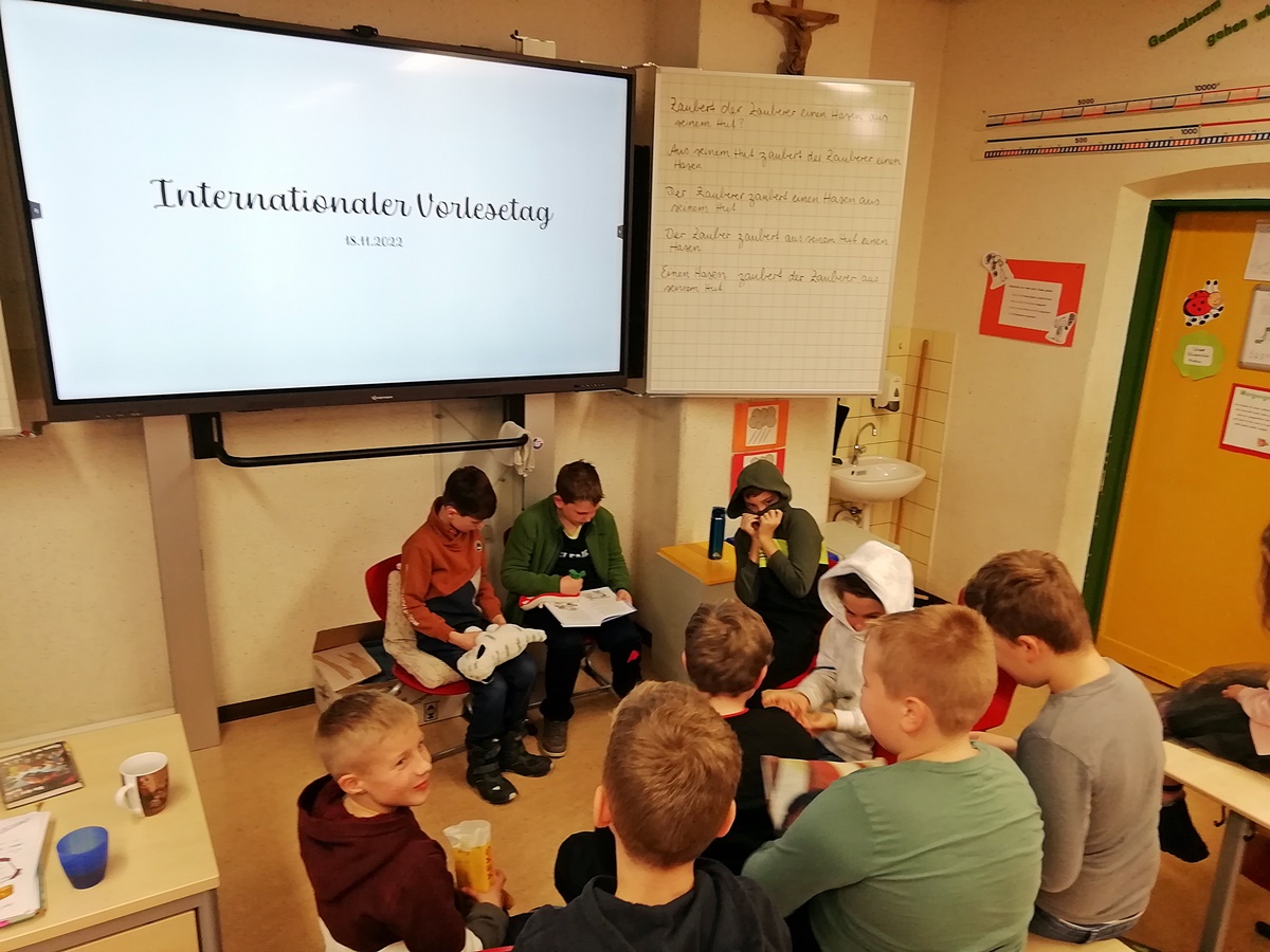 Am Freitag war der Internationale Vorlesetag. Die Kombiklasse 3/4 der Markus Gottwalt-Schule (MGS) veranstaltete deshalb ein Vorlesefrühstück. Zuerst hat man Plätzchen gegessen, Tee getrunken und über verschiedene Lesevorlieben und Büchergenres gesprochen. Danach folgten verschiedene Büchervorstellungen. Die Schülerinnen und Schüler konnten sich im Anschluss entscheiden, aus welchem Buch sie gerne vorgelesen bekommen.