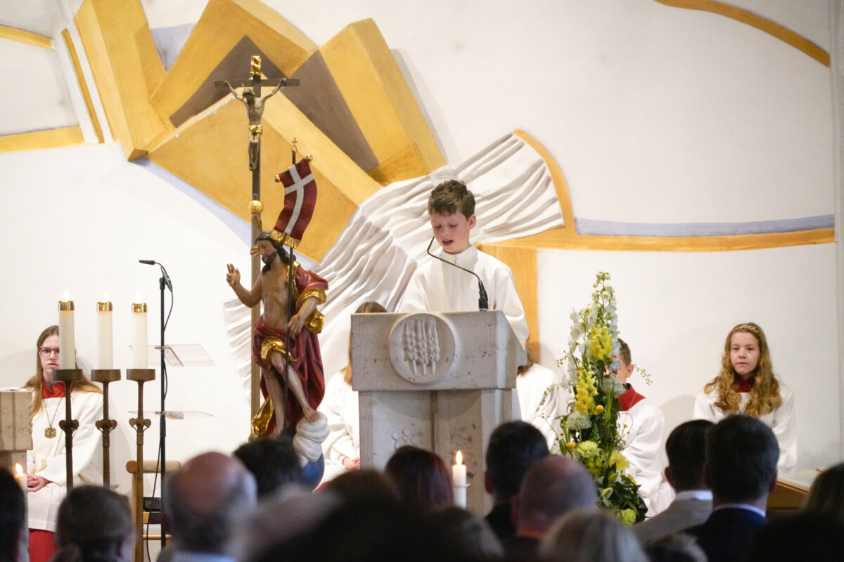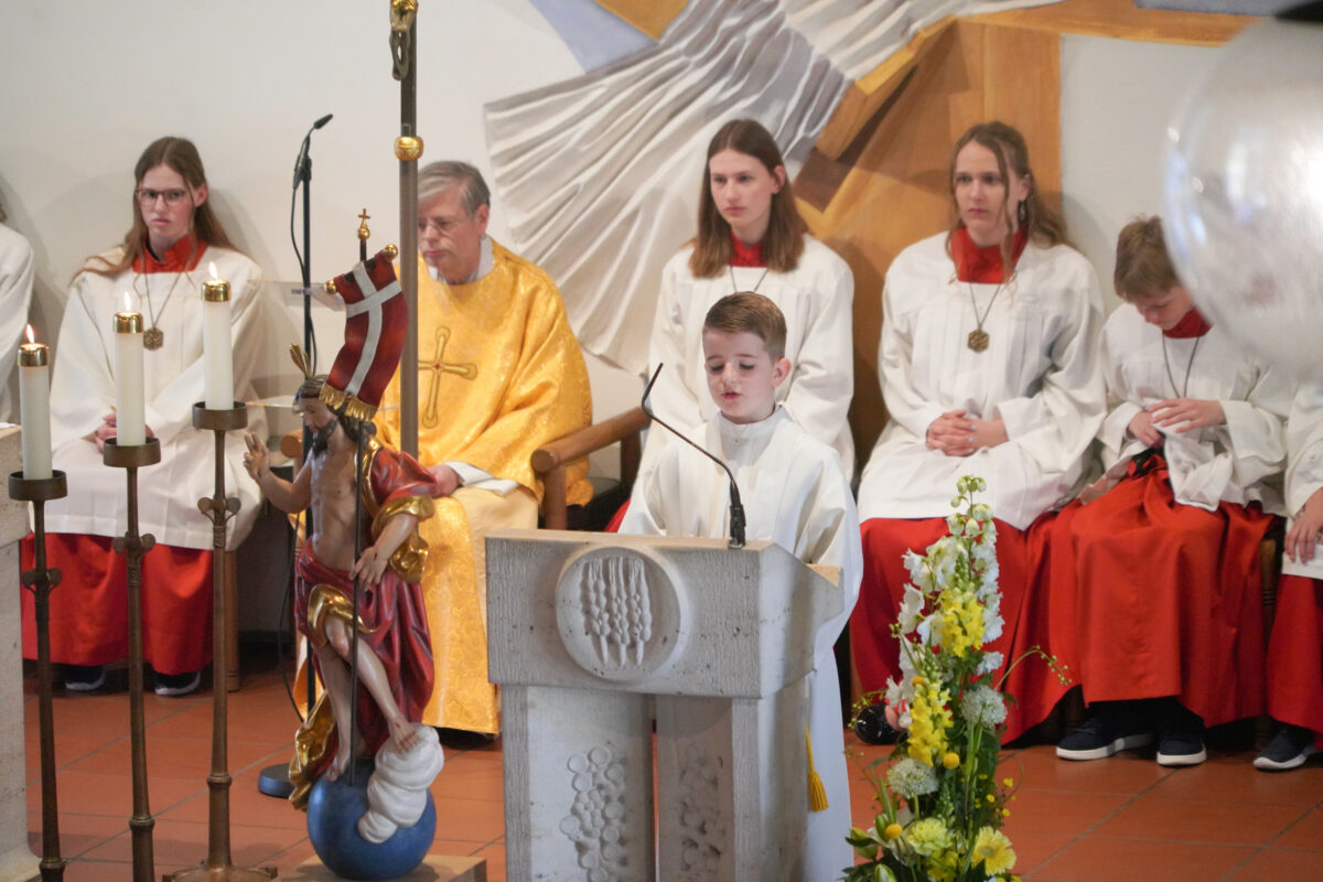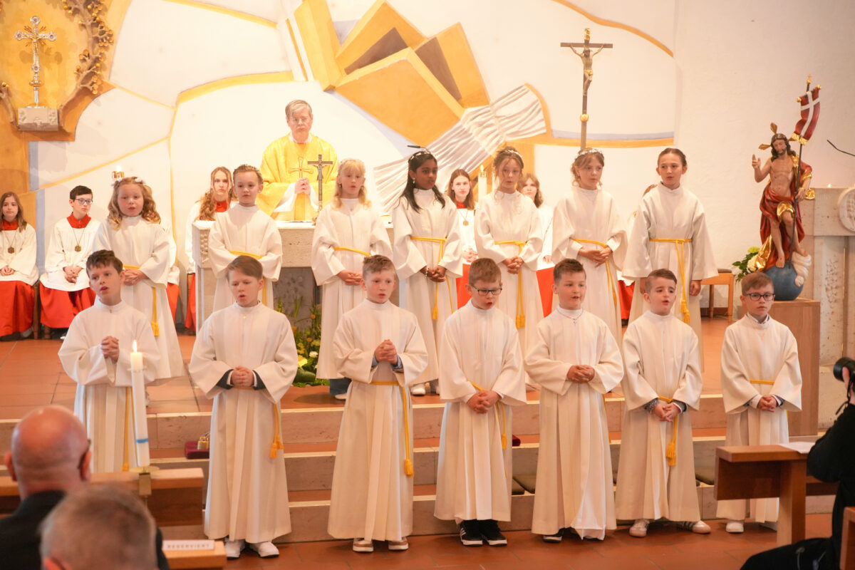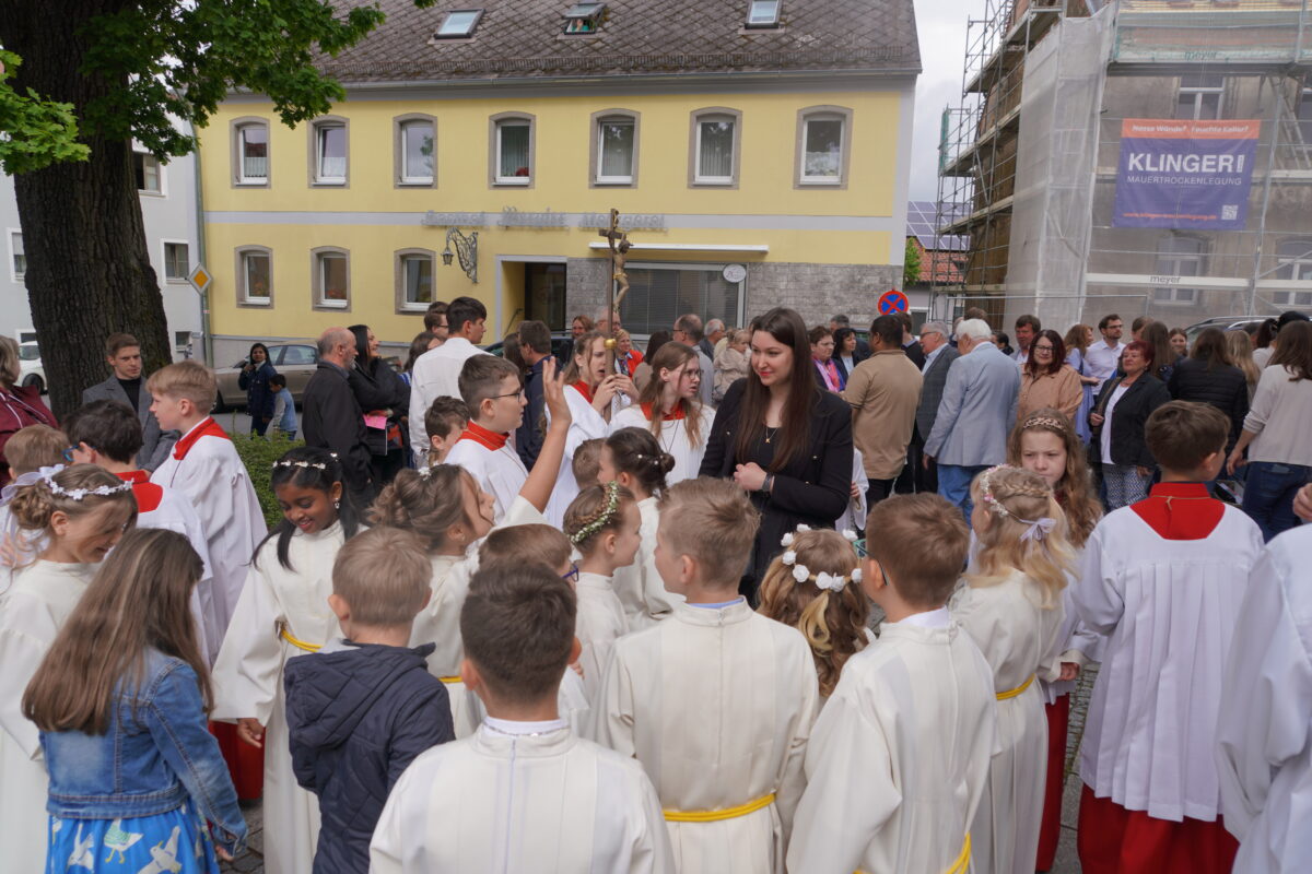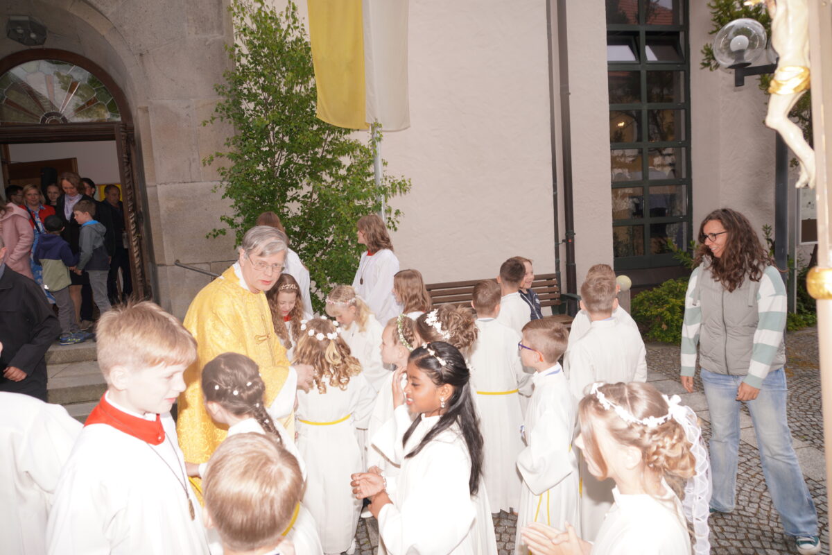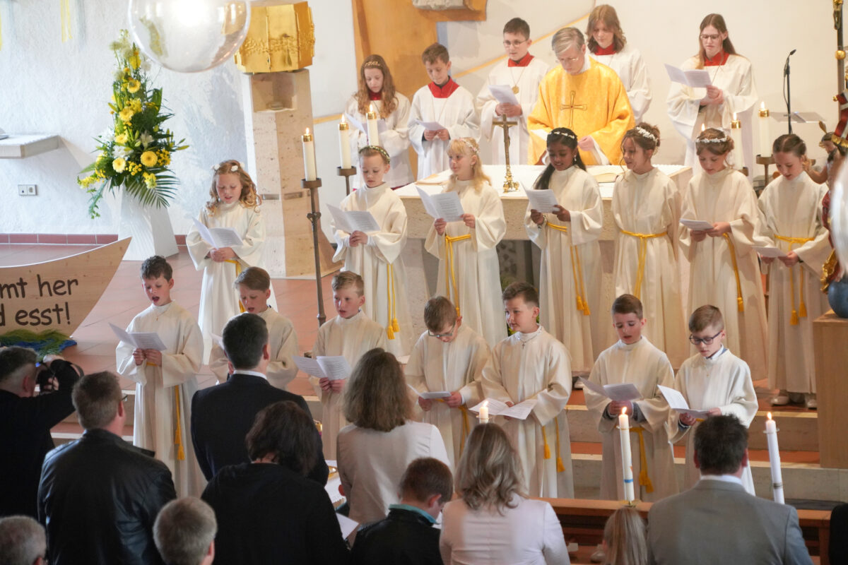 Zum ersten Mal empfingen den Leib des Herrn: Hannes Bodensteiner, Antonia Feneis, Christian Fichtl, Noah Graf, Elisabeth Hufnagl, Isa Joseph, Merle Kastner, Fabian Keil, Anna Kleber, Emilia Lindner, Lukas Pöhlitz, Felix Stahl, Mia Szöcs und Anton Weig. Zum Abschluss sangen die 14 zusammen am Altar das „Komm her und esst“ – Lied, wobei die Gottesdienstbesucher applaudierten.