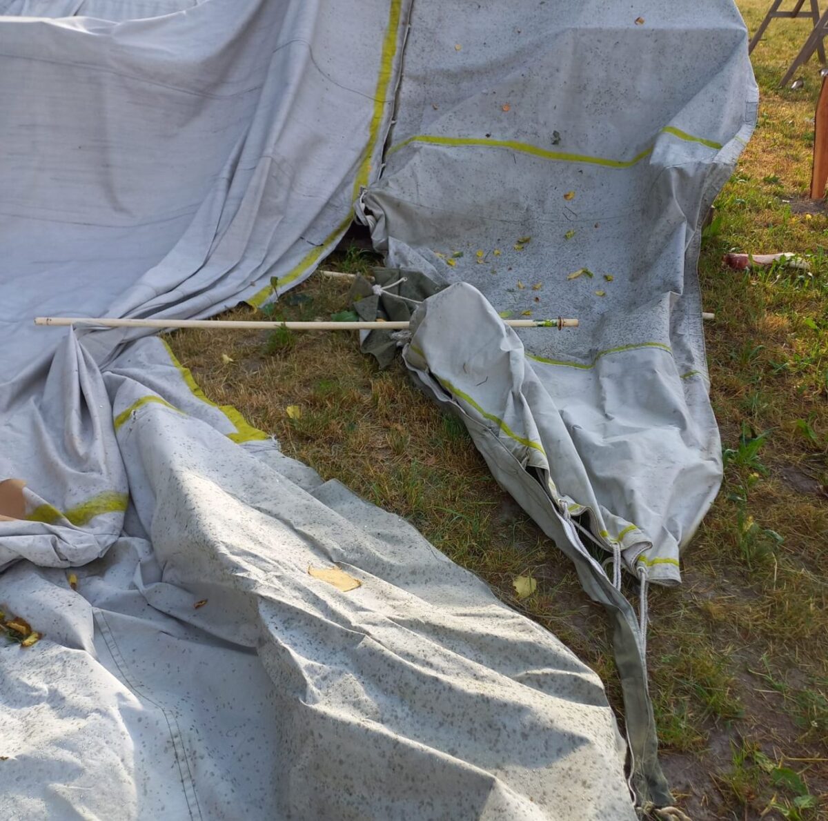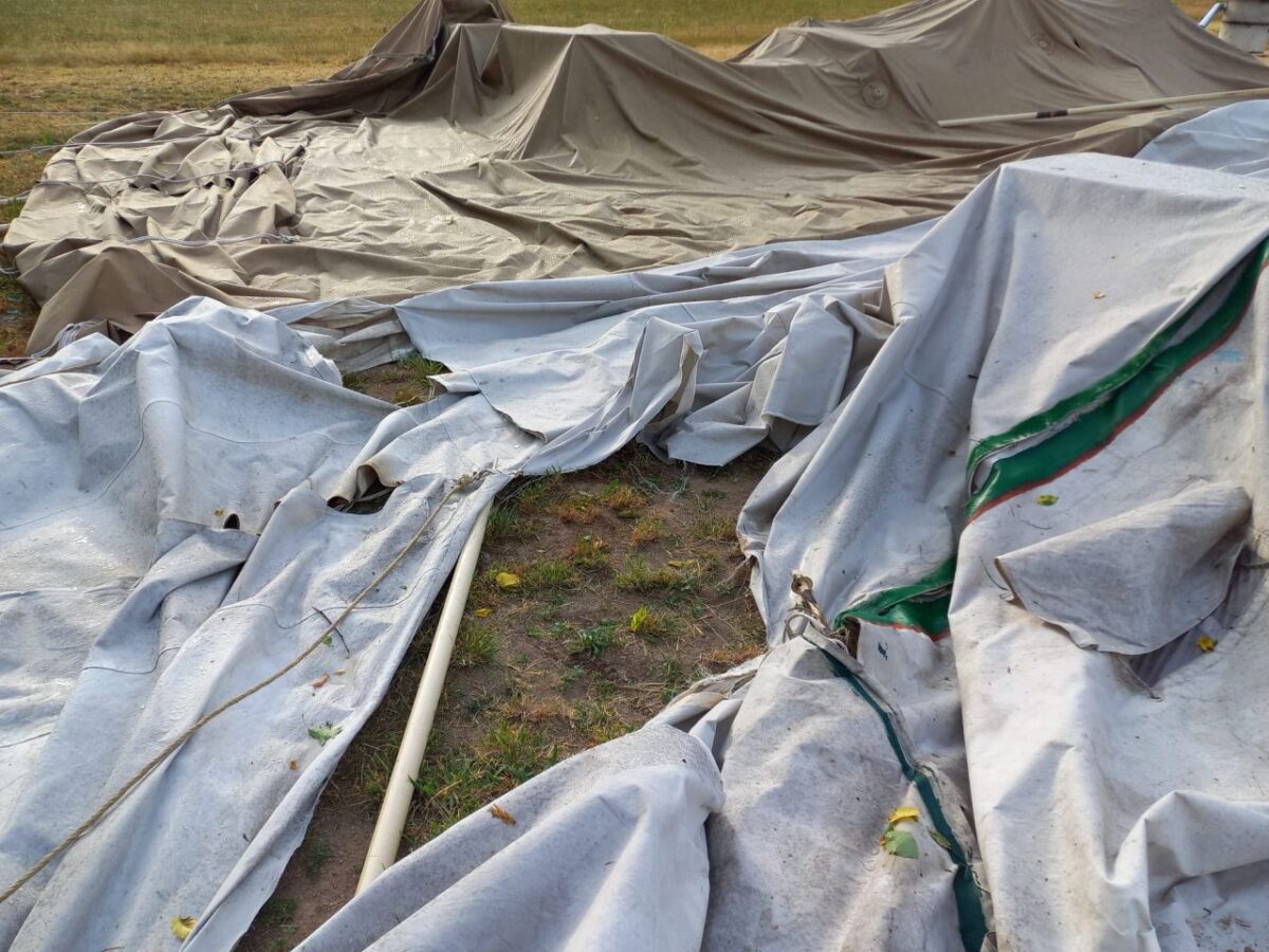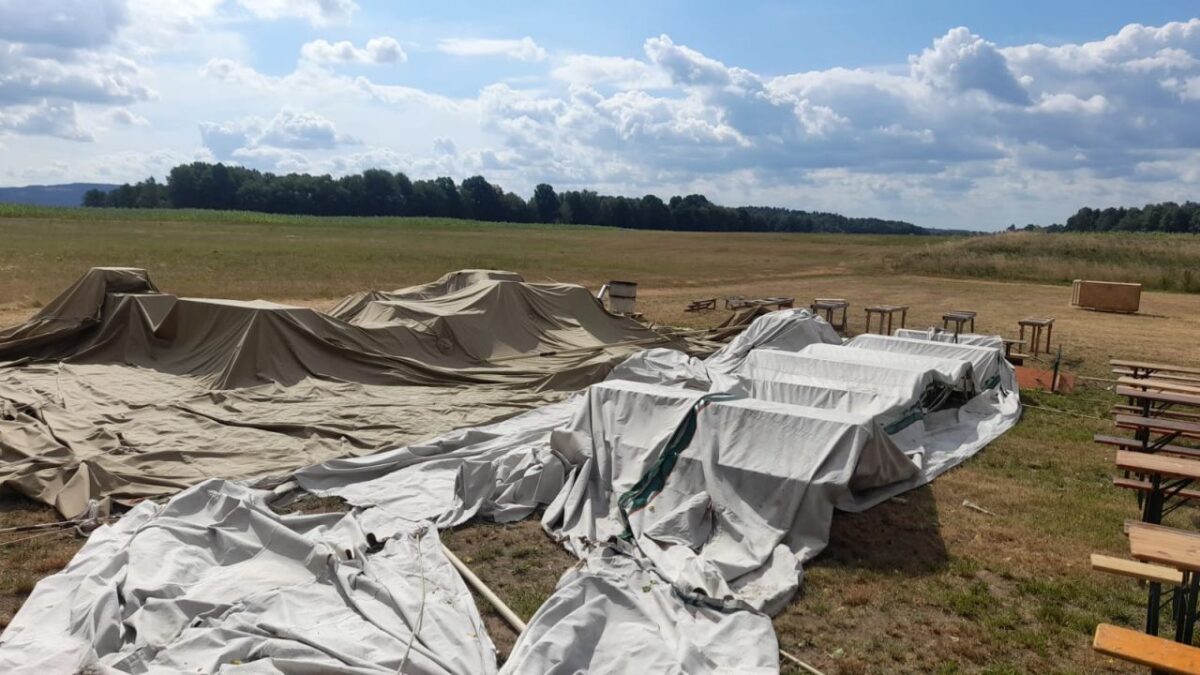 In der Nacht von Montag auf Dienstag machte jedoch ein heftiges Unwetter den Organisatoren einen Strich durch die Planung. Der Sturm kam unerwartet, innerhalb von kaum 15 Minuten haben Sturmböen das vorbereitete Zeltlager verwüstet, Zelte wurden zerrissen, losgerissen oder stürzten ein. Der Schaden beläuft sich auf etwa 10.000 Euro.
