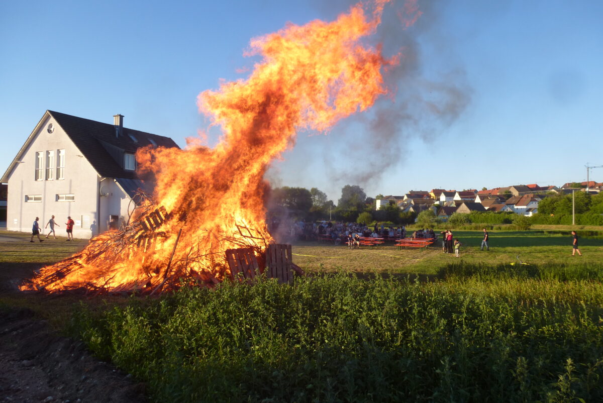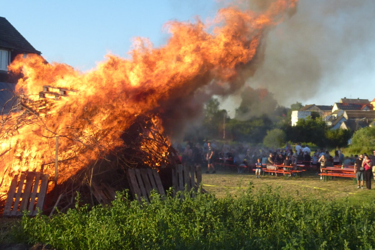 Erstmals durfte die kürzlich gegründete Kinderfeuerwehr den hohen Holzstoß entzünden. Pfarrer Matthias Weih hatte dafür die Wachsfackeln spendiert. Nach einem Gebet von Weih segnete Pater Prince Kalarimuryil das Feuer, das wenig später hochloderte.