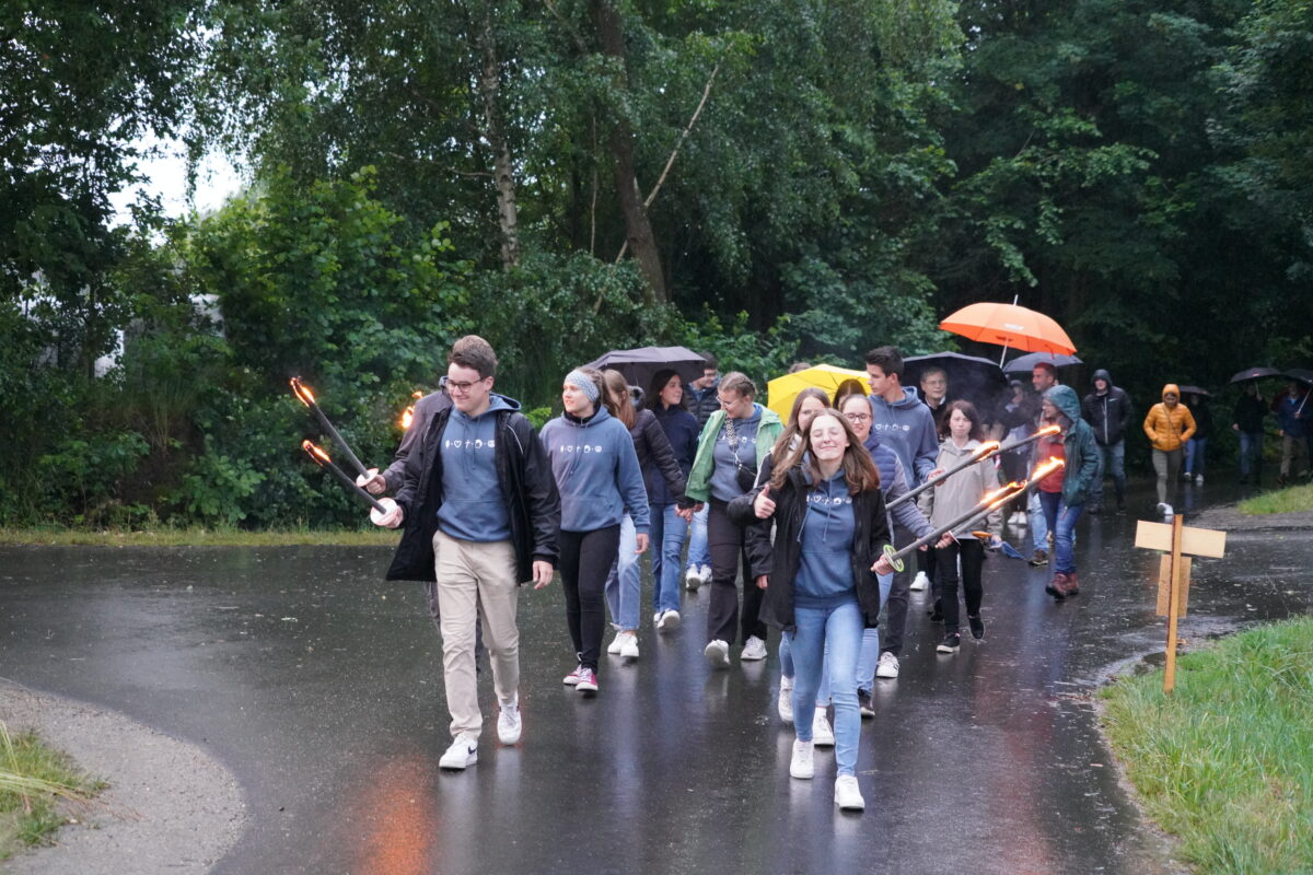 Kurzerhand haben die Landjugendleute für die vielen Besucher zwei Zelte aufgestellt, sogar der Regen hörte am späteren Abend auf und man konnte die imposant und angenehme Johannisfeuerwärme auch im Freien mit einem Getränk und Bratwürsterln genießen. Vom Dorfkreuz in Woppenrieth aus waren zuvor die jungen Christen mit Fackeln zum „Kannesfeuerplatz“ marschiert.