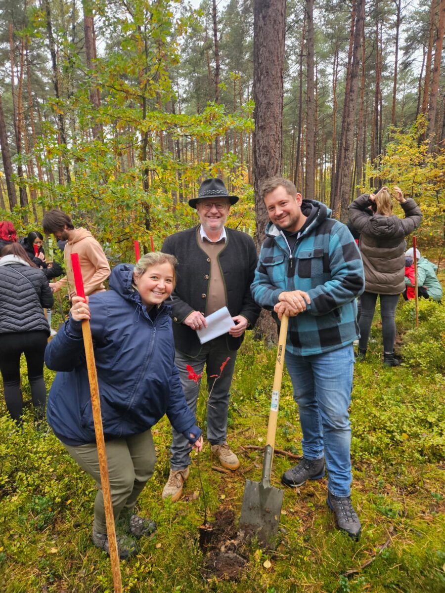 Insgesamt 51 Familien aus Schwandorf pflanzten gemeinsam mit den Mitarbeitenden des Städtischen Bauhofs Bäume im Stadtwald am Weinberg. 51 neue Bäumchen – darunter Küstentannen, Roteichen, Rotbuchen und Douglasien – erweitern nun die Waldlandschaft und stehen symbolisch für das Leben der Kinder, die zwischen März und August 2025 in Schwandorf geboren wurden. Jede Familie erhält ein persönliches Schild mit Namen und Geburtsdatum ihres Kindes an einer Baumstele.
