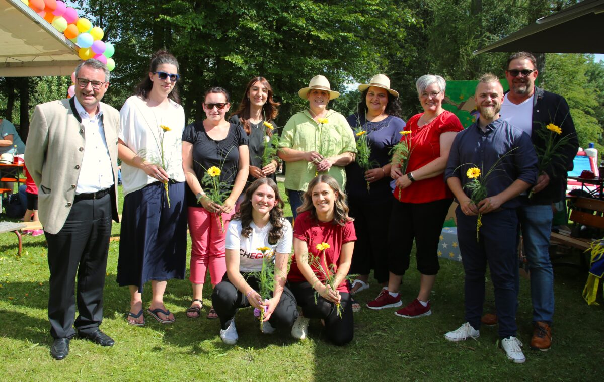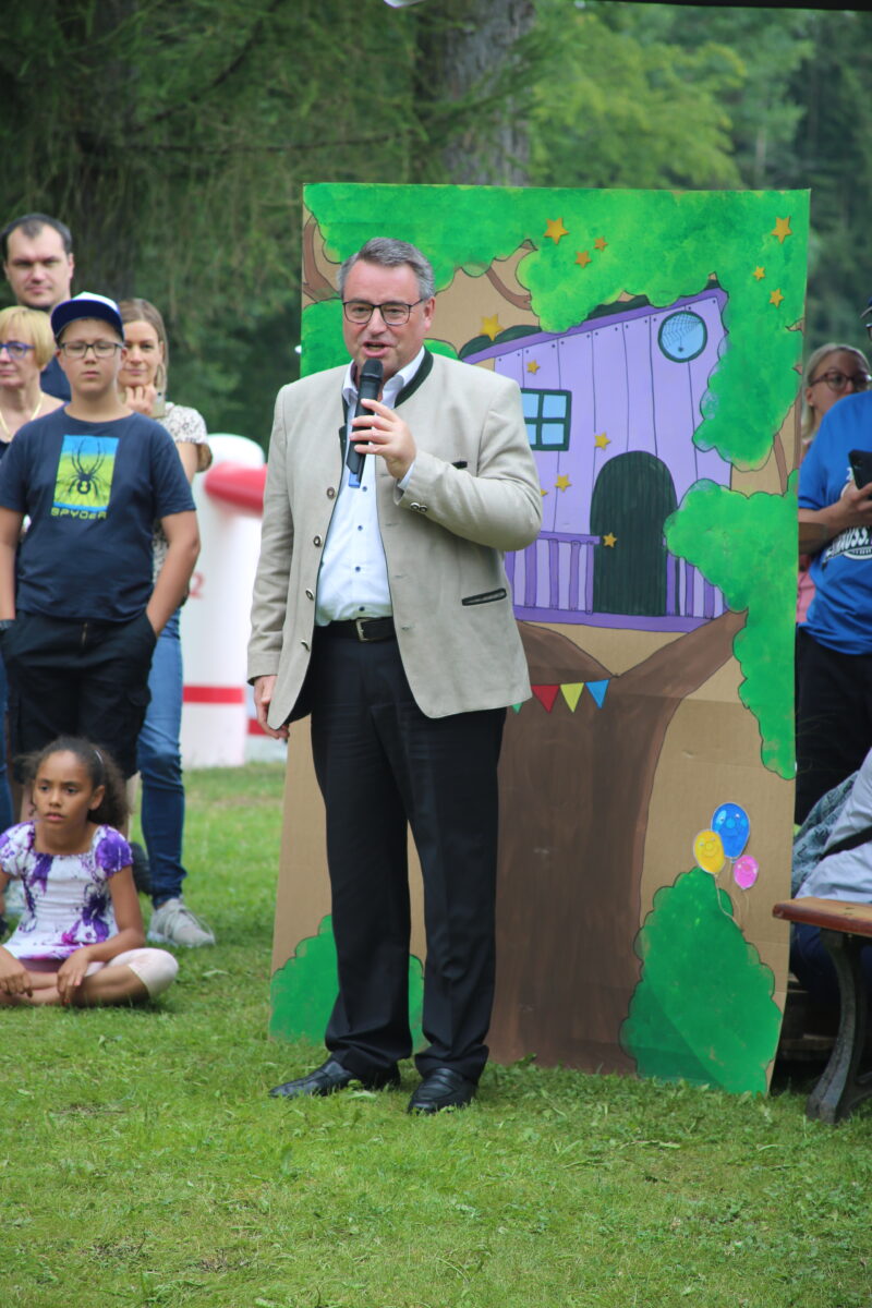 Nach kurzen Ansprachen des Elternbeiratsvorsitzenden Michael Kraus und des Pechbrunner Bürgermeisters Stephan Schübel, fasste sich auch Johanniter-Regionalvorstand Martin Steinkirchner bei seinem Grußwort kurz. „Wir haben die Trägerschaft vor zwei Jahren übernommen und sind sehr stolz auf das tolle Team hier in Groschlattengrün unter der Leitung von Bastian Peetz.“ Dieser gab das Lob umgehend zurück und bedankte sich für die tolle Zusammenarbeit.