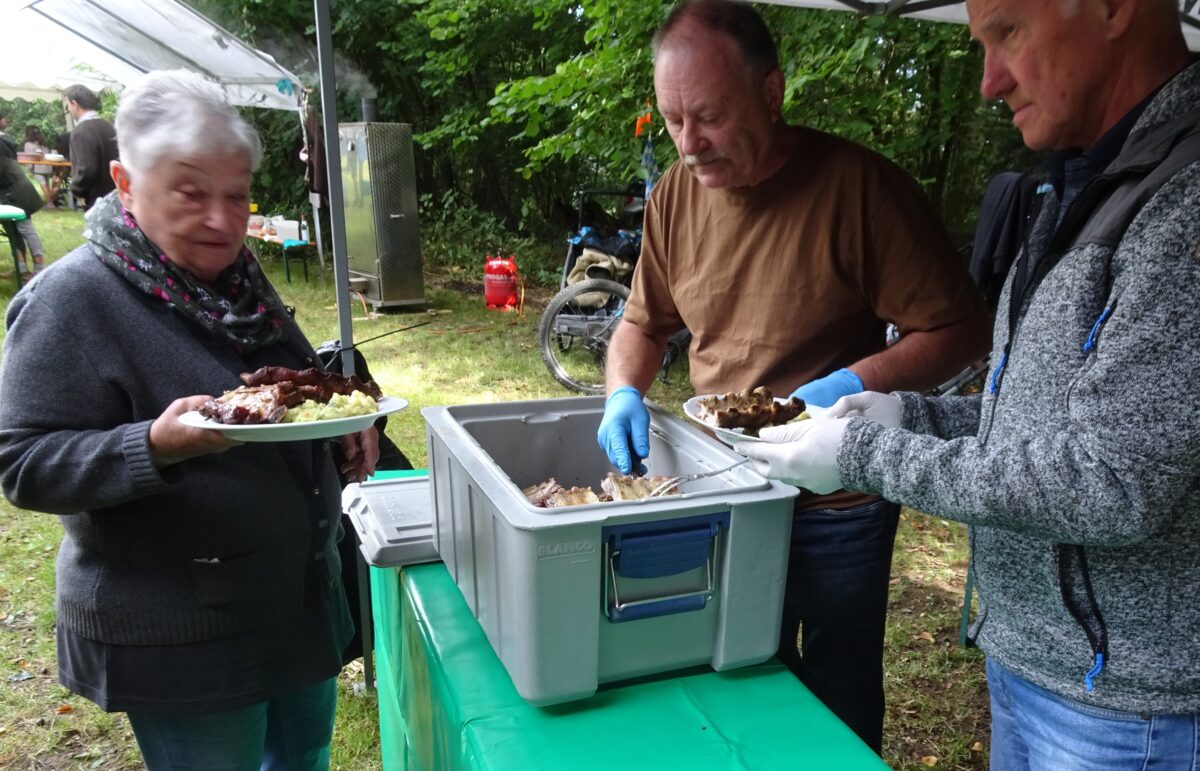 Nach dem Segen strömten die Besucher zum Festplatz, wo die engagierten Helfer des OWV mit süffigem Bier und alkoholfreien Getränken aufwarteten. Das Essensangebot ließ keine Wünsche offen: Ripperl mit Kartoffelsalat, frisch geräucherter Fisch, Dotsch mit Apfelmus, Brotkuchen, Bratwürste, Schnittlauchbrot, Fisch- und Käsesemmeln sorgten für lange Schlangen an den Verkaufsständen. Besonders beliebt waren die Ripperl, die reißenden Absatz fanden.
