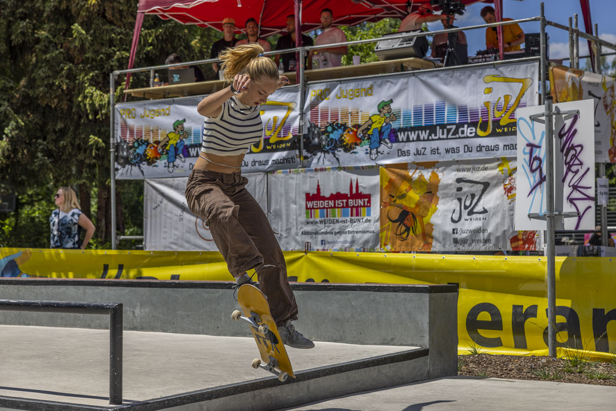 Bei den Teilnehmenden waren am Samstag im Skatepark des Juz Jungen wie Mädchen aus ganz Deutschland dabei, bis aus Köln war Deniel Cramer angereist. Weil er den 4. Platz in der Gruppe A machte, bekam er immerhin 100 Euro, plus ein paar 5-Euro-Scheine in der Best-Trick-Session. Dominik Maul aus Sulzbach-Rosenberg, der Gewinner der Gruppe A, bekam für seinen ersten Platz schon 500 Euro. Insgesamt 3.000 Euro an Geld- und Sachpreisen, gesponsert vom Skitch Skate Shop in Grafenwöhr, sowie große Pokale verlieh das Juz-Team an die Gewinner.