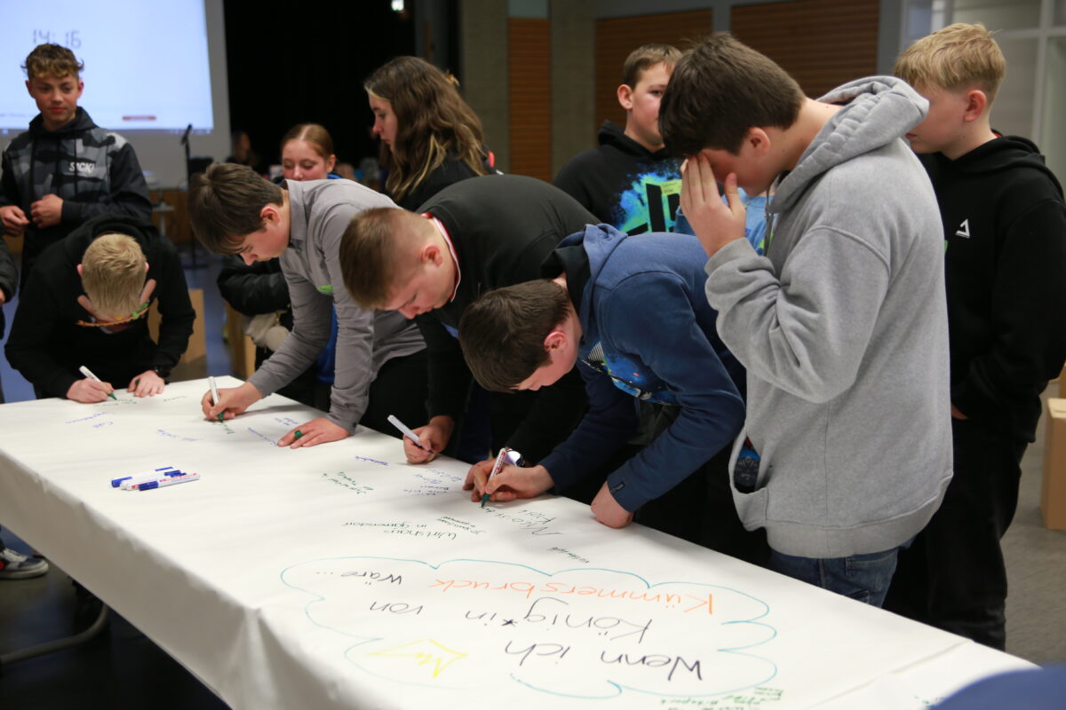 „Wenn ich König von Kümmersbruck wäre“ – dieser Satz stand auf einem Tisch und die Jugendlichen konnten ihre Vorstellungen und Wünsche darauf schreiben. Themen wie eine Kletterhalle oder auch eine Tanzschule würden die Könige aus Kümmersbruck gerne errichten. Besonders erfreulich waren die Themen, die „IN“ in der Gemeinde sind. Der Sportpark an der Vils, das Hallenbad und auch die Bücherei sind Highlights für die Jugendlichen.
