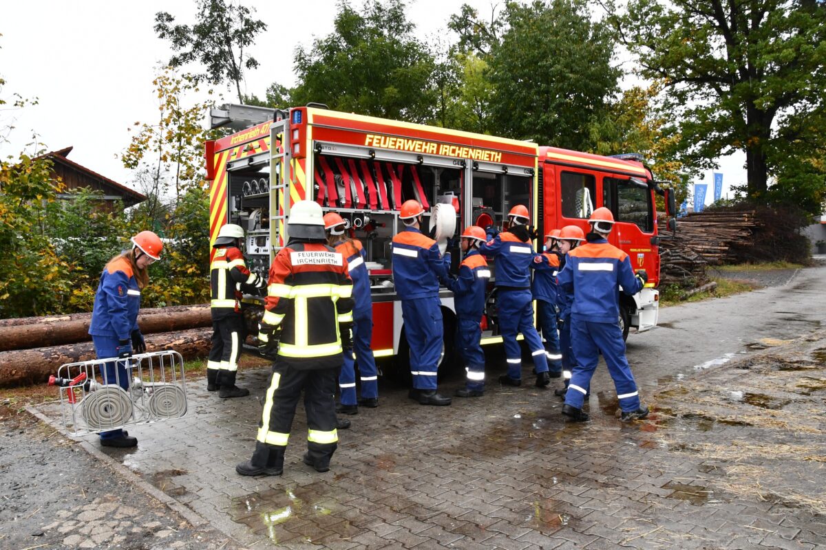 Der Schirmitzer Jugendwart Christian Robl hatte mit seinen Stellvertretern Patrick Gruber, Hannah Hochwart und Marco Bock die Einsatzübung organisiert. Robl wies als Einsatzleiter die anrückenden Feuerwehren ein und verteilte die entsprechenden Einsatzaufträge. Auf der Südseite des Brandobjekts packten die Bechtsriether und Schirmitzer Jungfeuerwehrleute jeweils ihre Tragkraftspritzen aus und entnahmen aus der Naab das Löschwasser für alle beteiligten Feuerwehren der Übung.