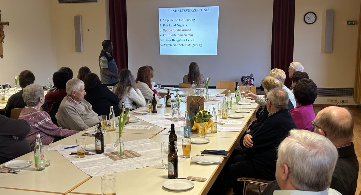 Für vierzig Jahre Treue zum KAB-Ortsverband wurden Renate Hader, sowie Anita und Johann Pscherer ausgezeichnet. In Abwesenheit bedankte die KAB-Vorsitzende Claudia Porst sich beim ehemaligen Immenreuther Pfarrer im Ruhestand Alfons Wurm für fünfzig Jahre an Mitgliedschaft bei der KAB. Präses Pfarrer Markus Bruckner, sowie 2. Bürgermeister Josef Hecht sprachen ein kurzes Grußwort. Pfarrvikar Dr. Linus bedankte sich für die großzügige Spende für sein Heimatdorf in Nigeria, mit dem ein Wasserbrunnen gebaut wurde. In einem kleinen Power-Point-Referat ging er auf seine Arbeit dort ein.