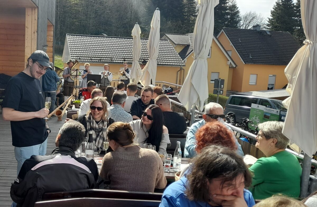 Einen unglaublichen Besucheransturm erlebte das Naturdenkmal Rauher Kulm, der größte von über 20 Vulkanen im Kemnather Vulkanfeld, am Sonntag. Der Grund dafür war schnell ausgemacht: Das Ausflugslokal „Kulmterrasse“ feierte seine Wiedereröffnung unter dem neuen Wirt Jonathan Pöpperl und Team mit viel Musik und besonderen Schmankerln. Neben Wolfgang Haberberger, Bürgermeister aus Neustadt am Kulm und seinem Amtskollegen Marcus Gradl aus Eschenbach, sowie Stadträten und Lieferanten, die mit dem neuen Pächter auf ein gutes Gelingen anstießen, kamen Gäste aus dem Amberg-Sulzbacher Land oder sogar der Bodensee-Region. Auch Radlfahrer, vor allem E-Biker, scheinen dieses Ziel zu lieben.