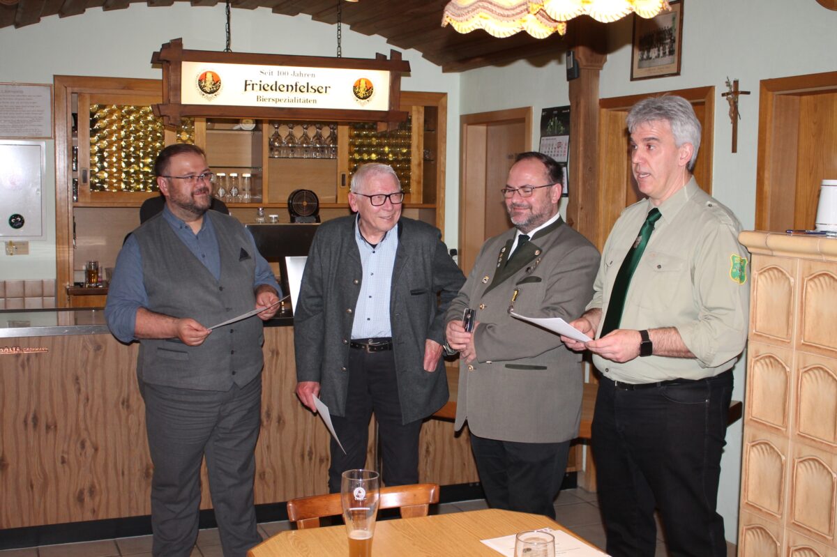 Der in seinem Amt bestätigte Vereinsvorsitzende Wolfgang Raps hebt hervor, dass Heining aktiv Vorhaben wie den Schützenhaus- und Schießstandneubau unterstützte. Mit seiner Jubiläumsehrung erhält er die goldene Verdienstnadel des Deutschen Schützenbundes. Raps betont: “Meines Wissens hat Georg für seine Verdienste noch nie eine Auszeichnung erhalten. Das wollen wir heute nachholen”.