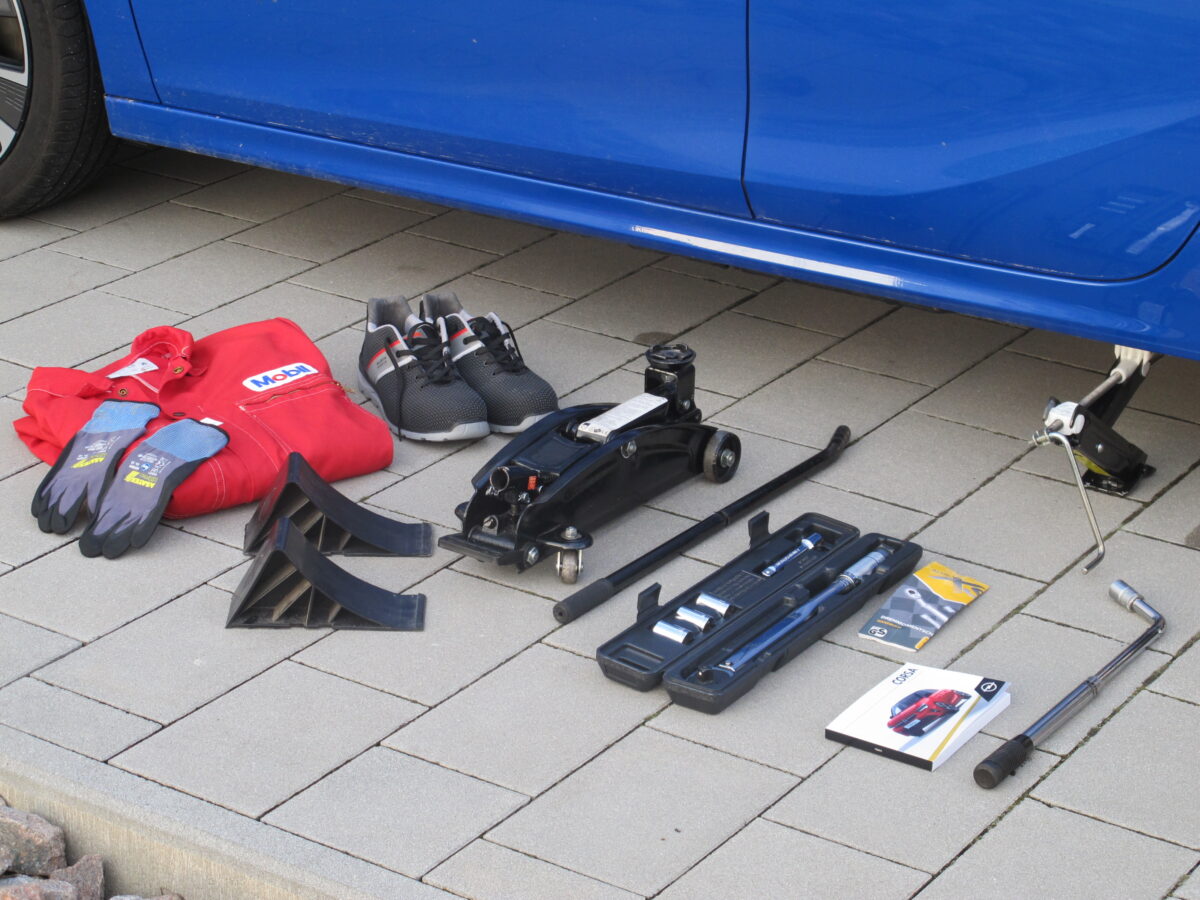 Neben einem ebenen, festen Untergrund sollten für „privaten“ Radwechsel auch ein hydraulischer Rangierwagenheber, zwei Unterlegkeile, ein (ausziehbarer) Radmutternschlüssel und ein Drehmomentschlüssel vorhanden sein. Ein Overall, Arbeitshandschuhe und Sicherheitsschuhe für den „Mechaniker“ sind zusätzlich empfehlenswert.