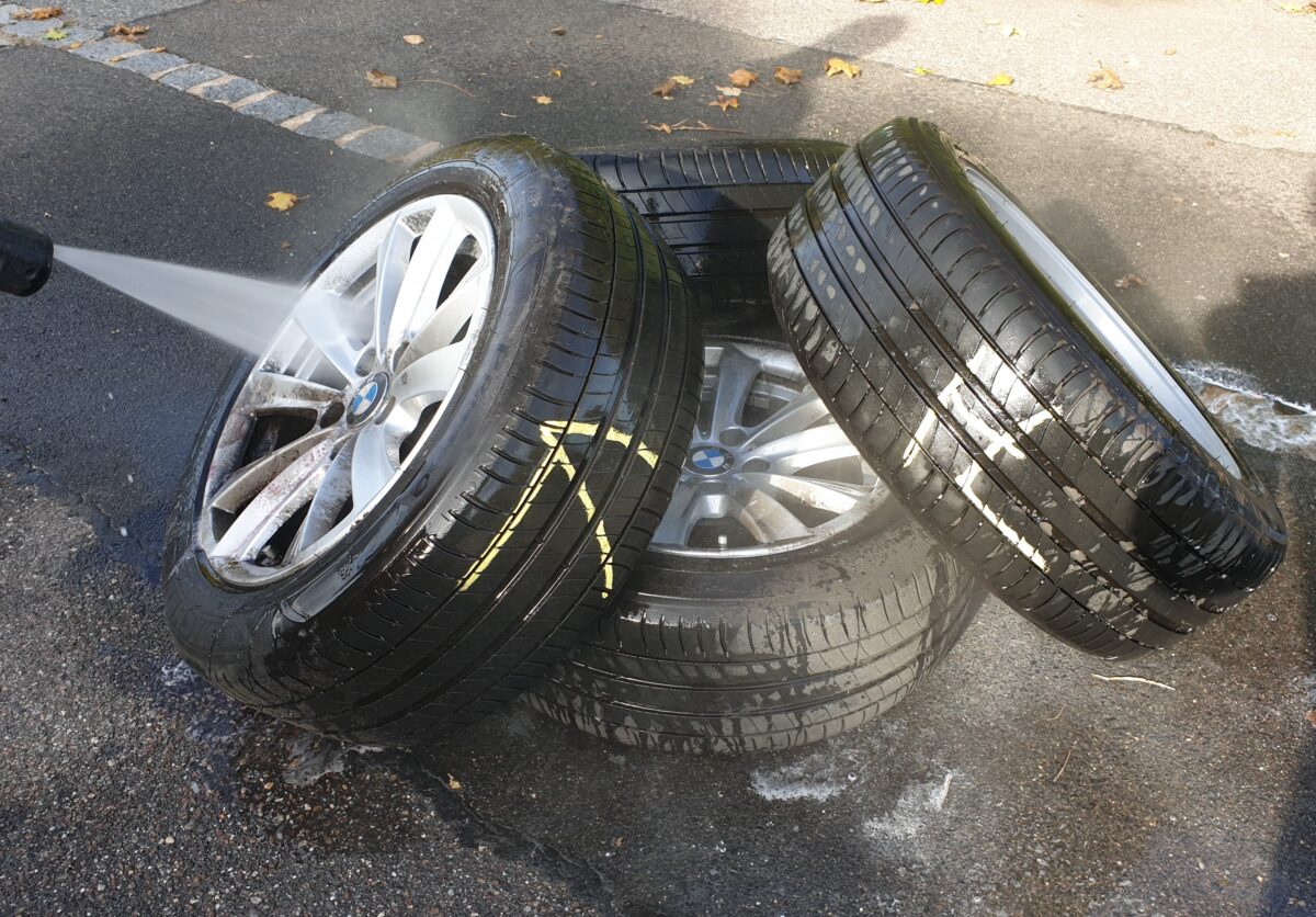 Um Risse oder Fremdkörper in der Lauffläche und die Profiltiefe für eine Weiter-Verwendung festzustellen, ist die Reinigung der abgenommenen Sommerreifen nötig. Dabei sollte der Mindestabstand der Düse des Hochdruckreinigers zum Reifen zumindest 20 Zentimeter betragenen und möglichst ohne Chemikalien sowie mit breiter Düse gewaschen werden.