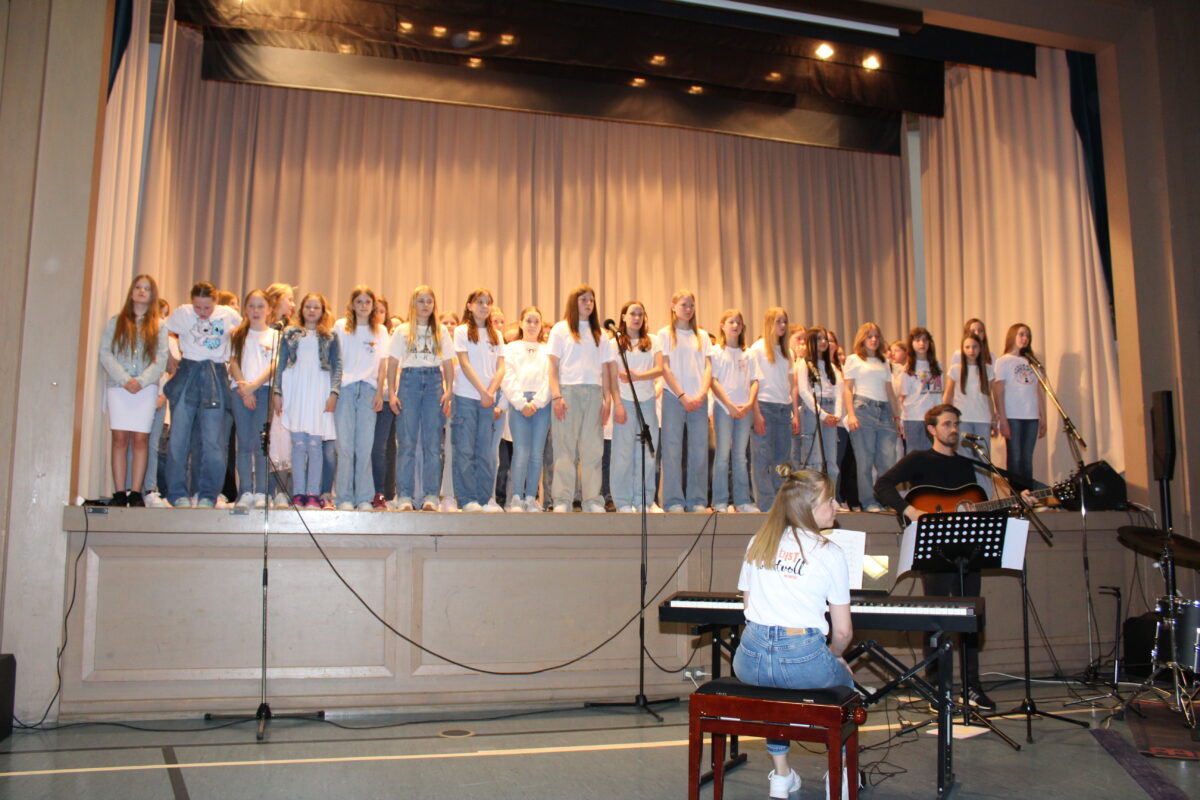 Zum Abschluss des eindrucksvollen Abends sorgte die „6k United“, bestehend aus Schulchor, Fünftklasschor, zwei weiteren Klassen und der Lehrerband für einen weiteren glanzvollen Abschluss des Abends, der deutlich machte, wie harmonisch an der RTO die Zusammenarbeit von Schülerinnen und Schülern mit ihren Lehrkräften funktioniert.