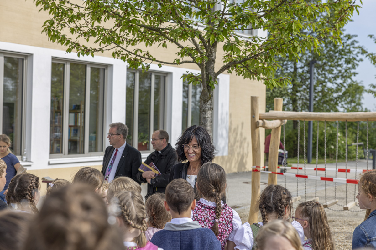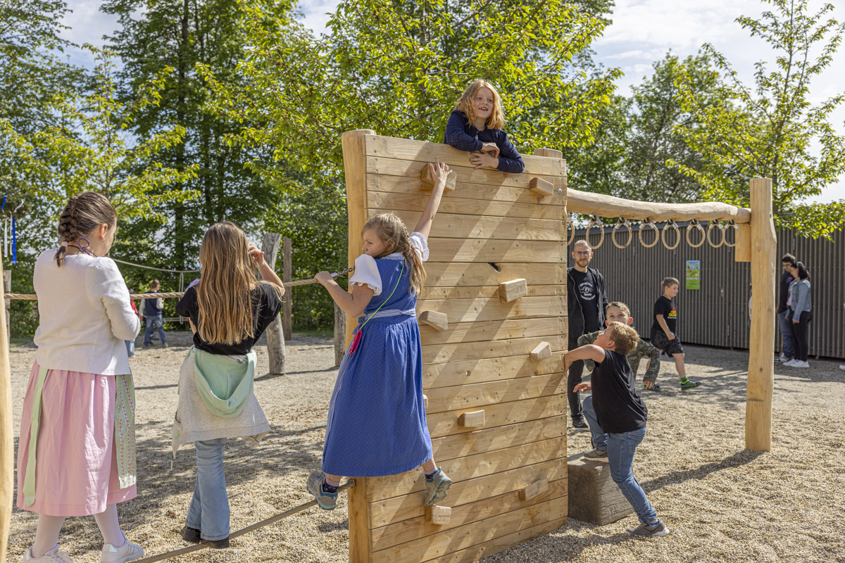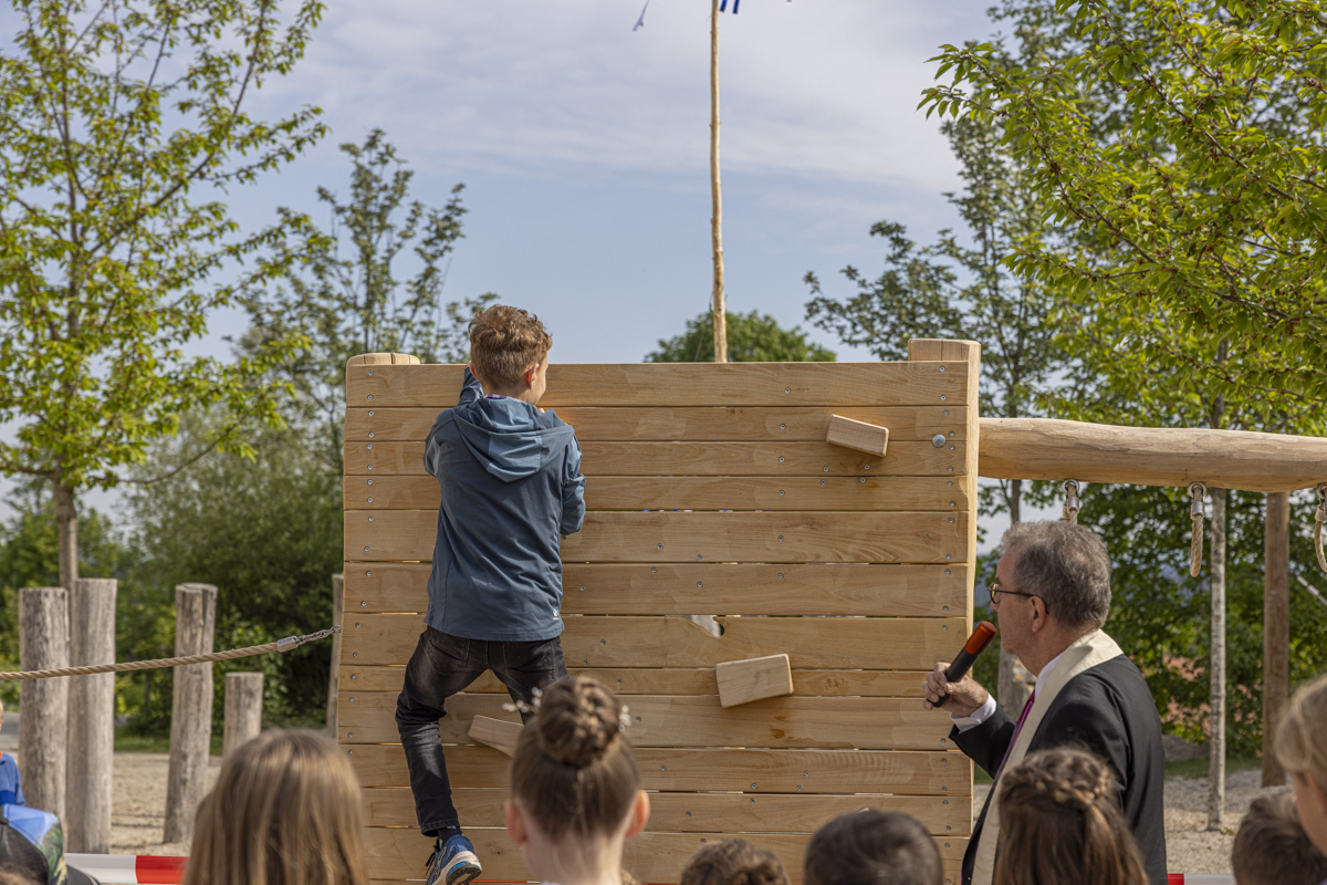 Nachdem die Kinder den Maibaum aufgestellt und die Besucher mit Tänzen und kleinen Ständchen begeistert hatten, durften die Ehrengäste das Spielgerät für die ersten Kletterpartien freigeben. Zuvor ließen es sich die Geistlichen natürlich nicht nehmen, ihren gemeinsamen Segen bei einer kleinen Andacht auszusprechen.