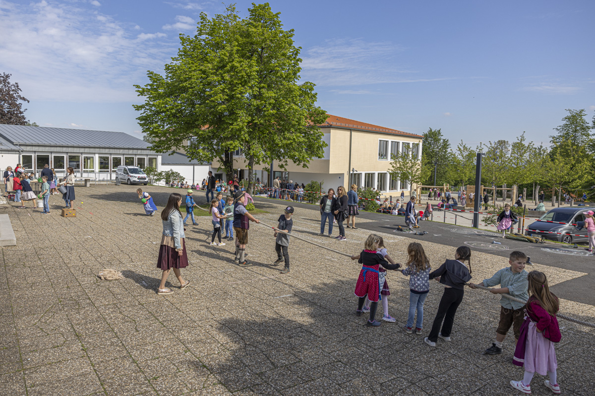 An diesem Freudentag wurde an der Grundschule bis in den Nachmittag hinein gespielt, gefeiert und die Frühlingssonne genossen. Rektorin Diana Dippel war von der tollen Veranstaltung, den vielen Gästen und fleißigen Helfern begeistert: „Ein durchaus gelungenes Maifest bei weiß-blauen Himmel mit bayrischen Spielen, Brotzeiten und Blasmusik.“