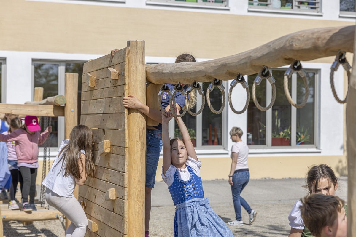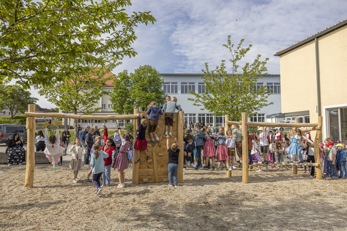 Die 103 Schülerinnen und Schüler der Grundschule Plößberg haben in der vergangenen Woche ein großes Maifest zusammen mit ihren Eltern, Geschwistern, Großelten und Lehrern gefeiert. Unter den 250 Gästen waren neben Bürgermeister Lothar Müller, Pfarrer Klaus Weber, Pfarrer Thomas Thiermann und Schulamtsdirektorin Martina Puff auch Marketing-Leiter René Oertel von der Ziegler Group. Sein Unternehmen hatte der Grundschule ein neues Spielgerät im Wert von zirka 13.000 Euro spendiert, das bei der Veranstaltung feierlich eingeweiht wurde.