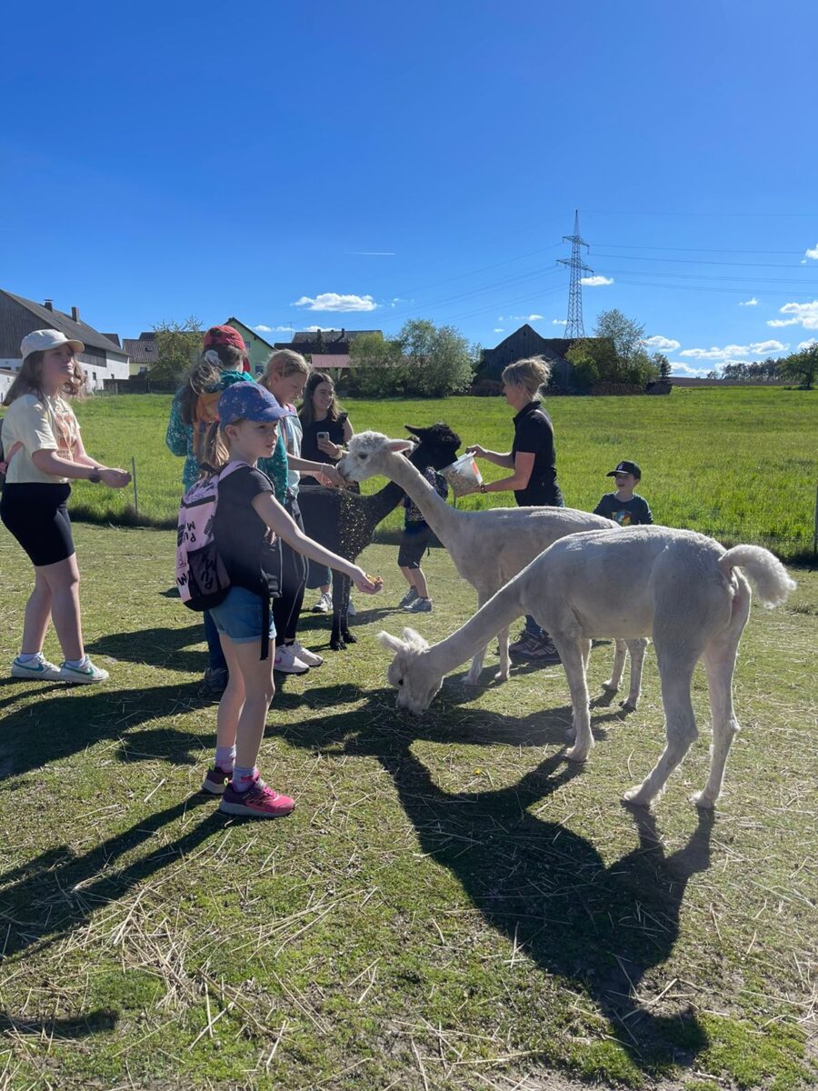 Zum Abschluss der Wanderung kehrten die Teilnehmer ins Gehege der Alpakas zurück, wo sie die Möglichkeit hatten, ihre neuen Freunde mit speziellem Alpakamüsli zu füttern. Diese Fütterung bot den Kindern und Jugendlichen eine weitere Chance, eine Bindung zu den Tieren aufzubauen und die friedliche Atmosphäre zu genießen. Der Tag endete mit einer besonders schönen Erinnerung. Jedem Teilnehmer wurde die Gelegenheit gegeben, ein Erinnerungsfoto mit seinem Lieblingsalpaka zu machen, ein Souvenir, das sicherlich noch lange in Erinnerung bleiben wird.