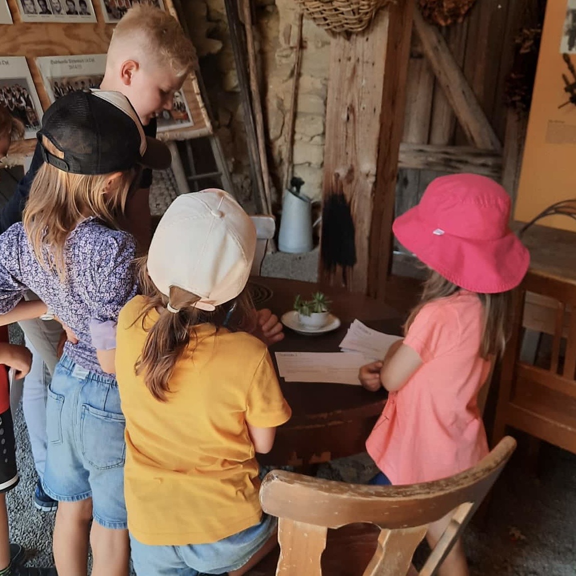 Um den jungen Teilnehmern zu vermitteln, dass auch Historiker und Experten des Heimatvereins oft recherchieren müssen, um den ursprünglichen Verwendungszweck von bestimmten Exponaten herauszufinden, wurde ein Quiz organisiert. An zehn verschiedenen Stationen gab es Rätsel zu lösen, wobei den Kindern mehrere plausible Lösungen vorgeschlagen wurden, um die Bedeutung von mysteriösen Fundstücken zu erraten. Besonders knifflig waren ein Transmissionsriemen und ein Mohnstampfer, bei denen die Kinder all ihr Wissen und ihre Kreativität einsetzen mussten, um die richtige Antwort zu finden.